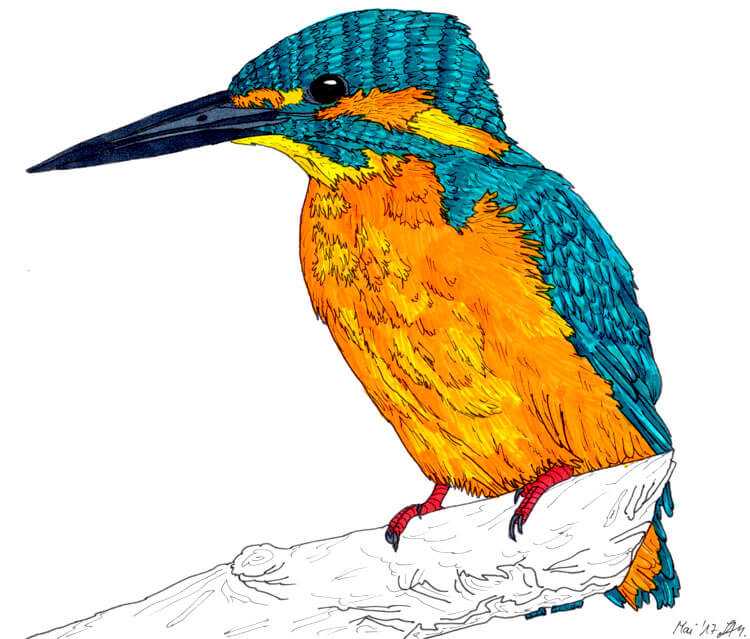 Zuerst habe ich mir eine Fotovorlagen von Pixabay gesucht. Für die farbintensiven Marker wollte ich ein buntes Tier malen und stieß beim Stöbern auf diesen hübschen Eisvogel.