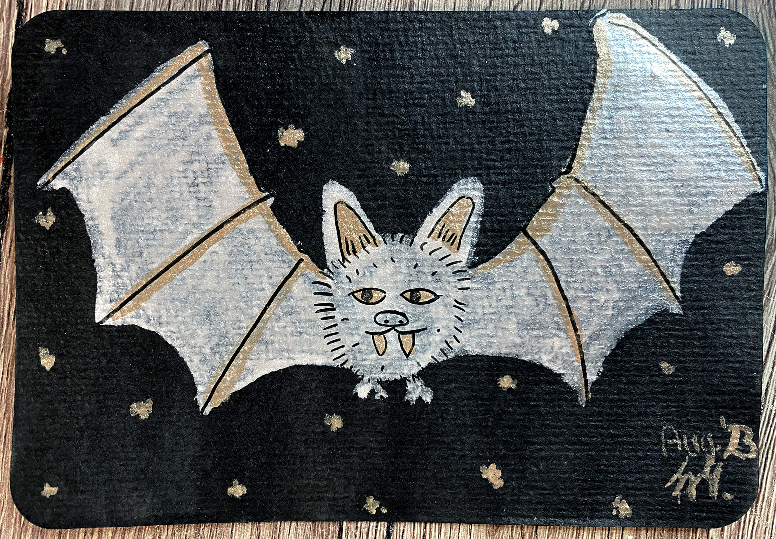 Und so sieht die komplett aufgeklappte Karte dann aus, mit dem versteckten Halloweengruß. 😉
