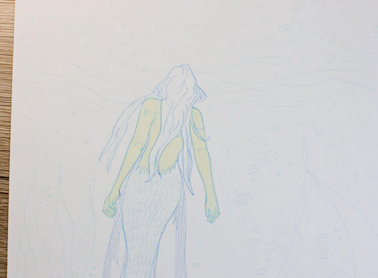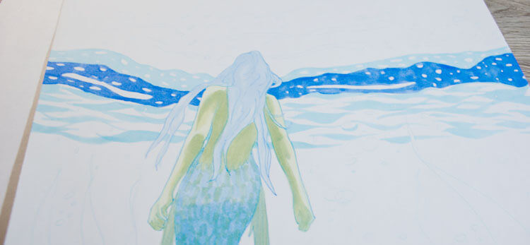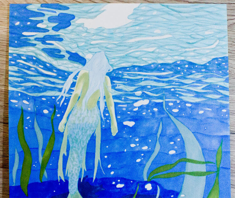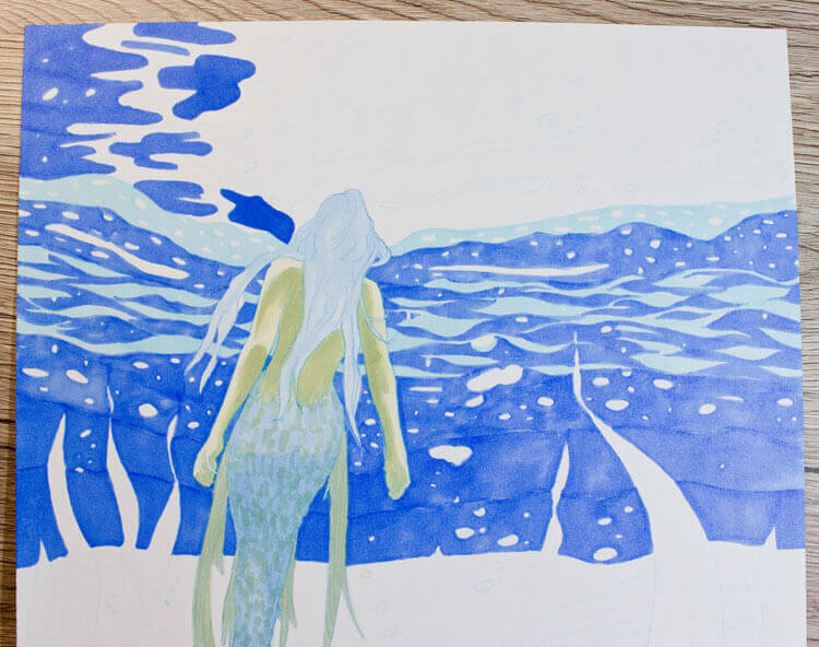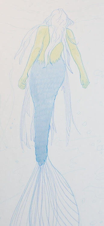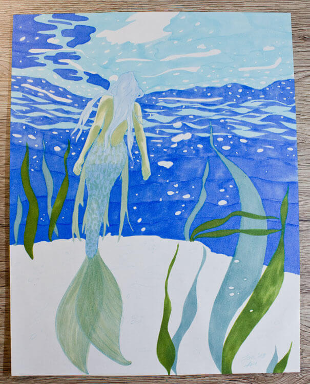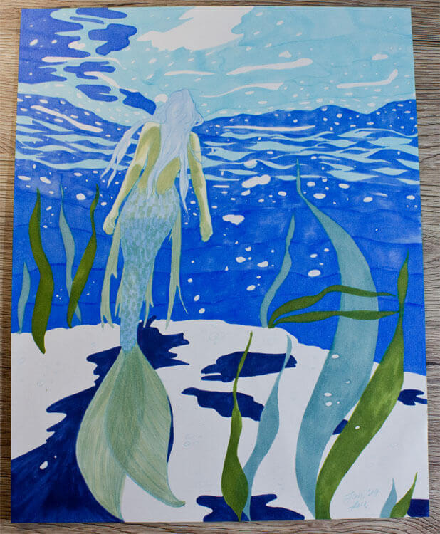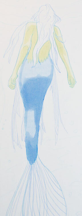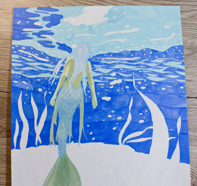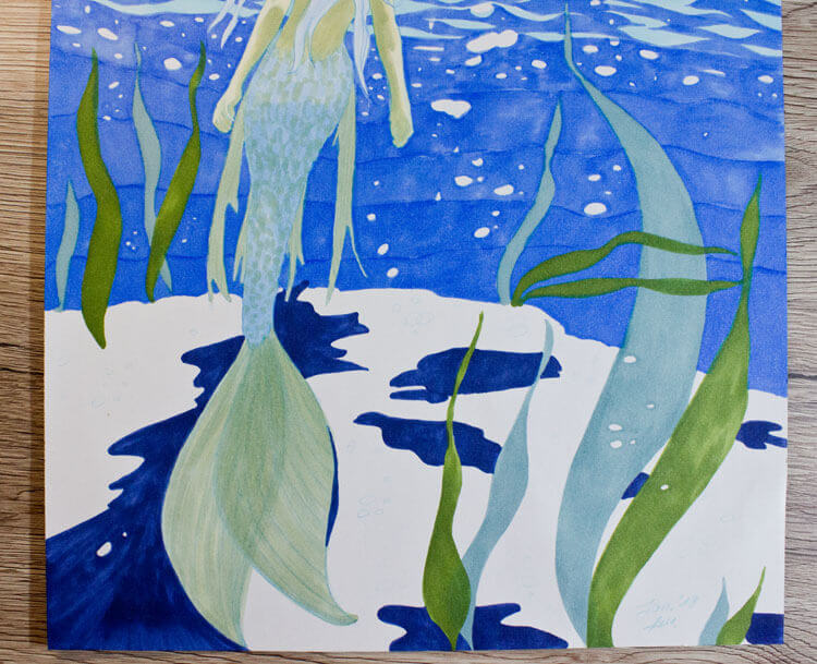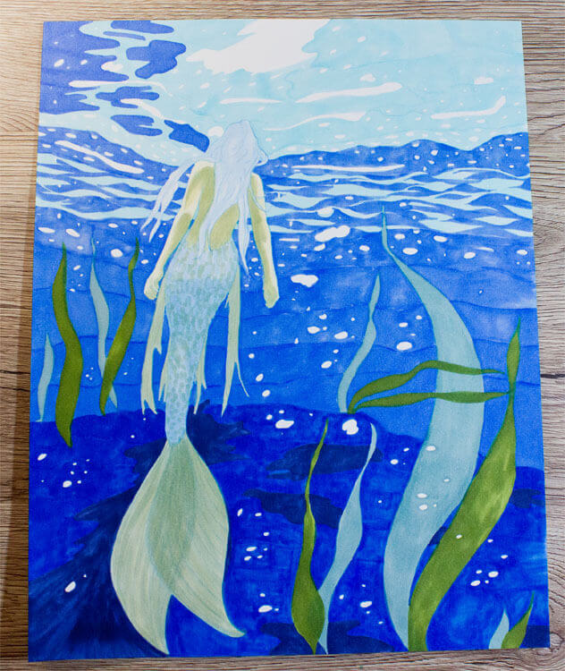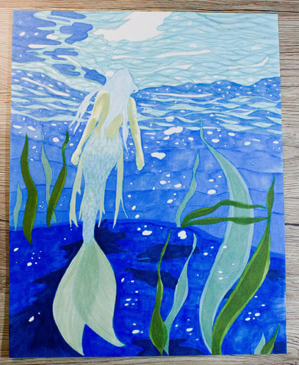 Meerjungfrau Unterwasser Markerkolorierung mit weißer Tusche - Fertiges Bild
