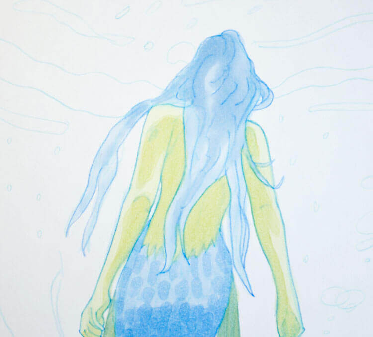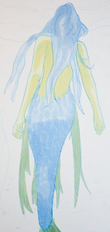 Meerjungfrau Unterwasser Skizze Eno Color Druckbleistift