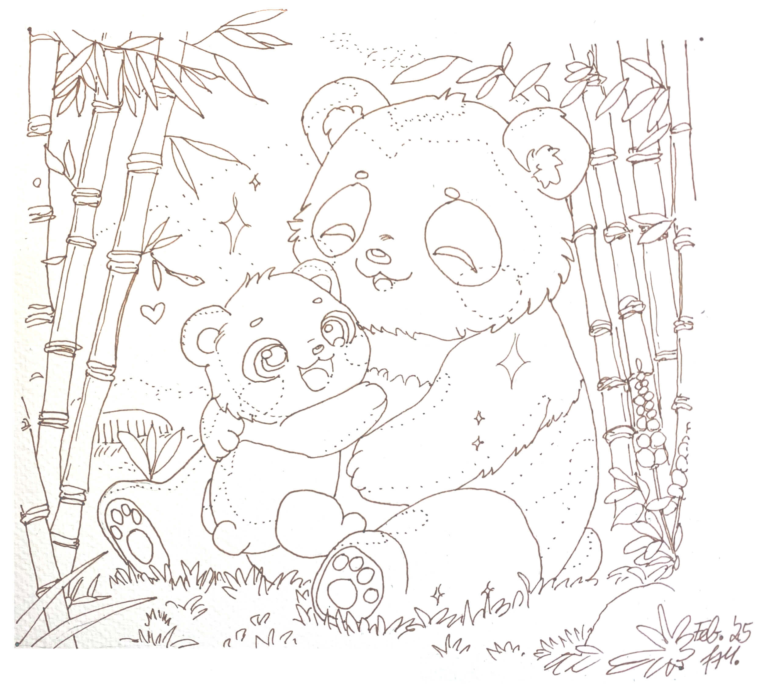 Für meine Tochter Sontje habe ich zu ihrem 8ten Geburtstag dieses Pandababy mit Mama gezeichnet. In letzter Zeit ist sie zu einem großen Pandabär-Fan geworden, weshalb ich ihr mit diesem Bild eine Freude machen wollte.