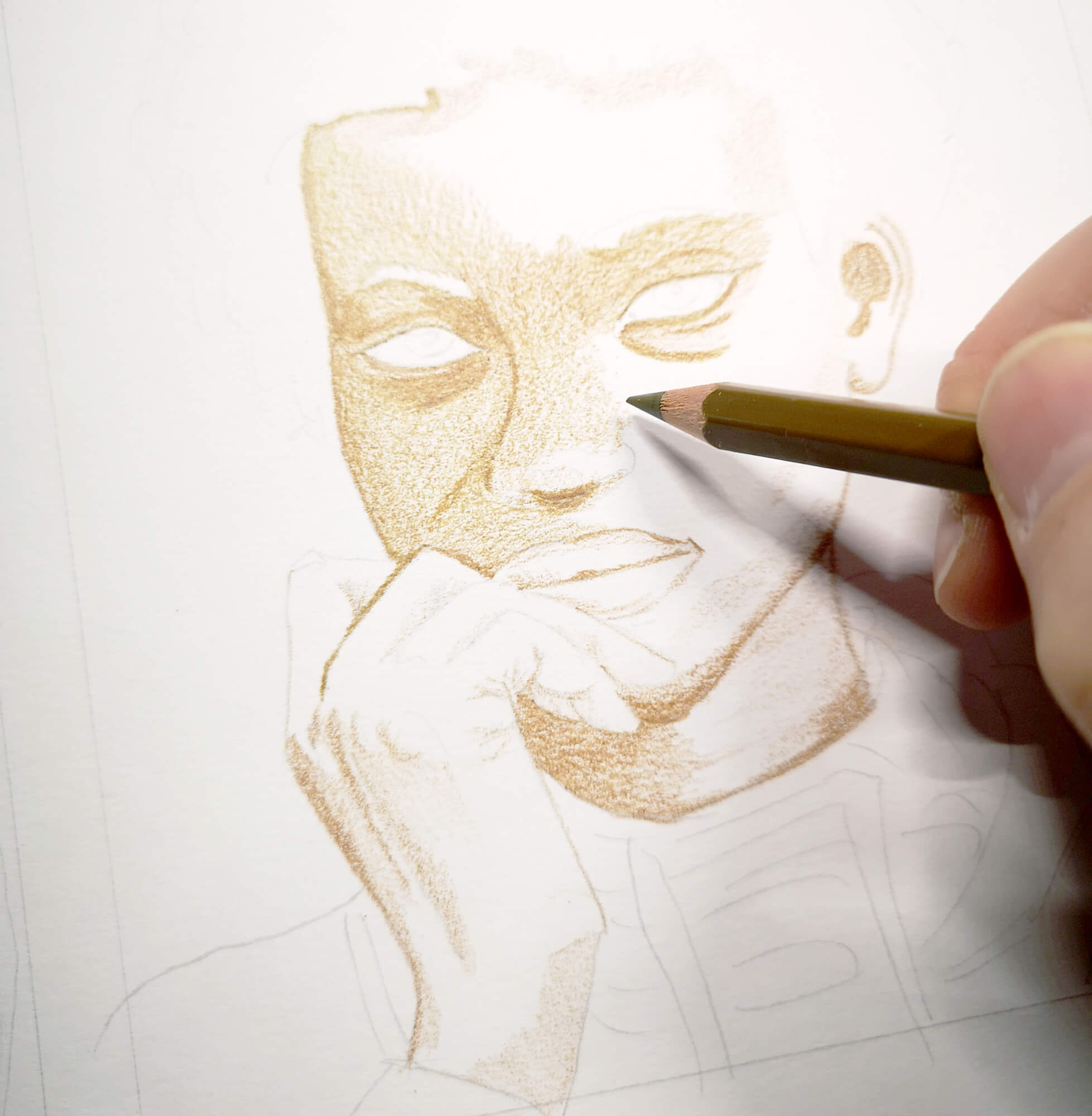Das Portrait einer Frau habe ich dann wieder klassisch mit Bleistift vor skizziert um es dann schrittweise mit Buntstift kolorieren zu können.