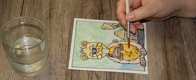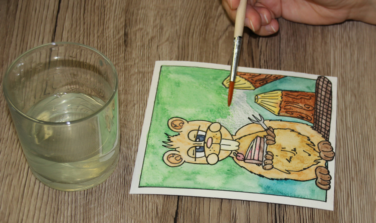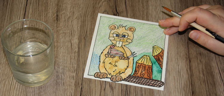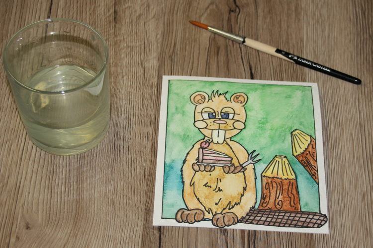 Klar, dass ich den Comicbiber anschließend auch mit Wasser vermalt habe um den schönen Aquarelleffekt zu bekommen.