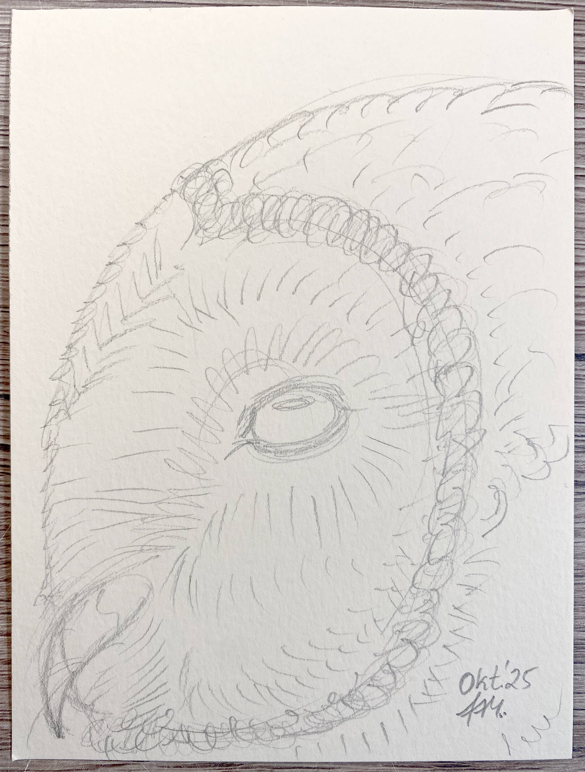 Für die Postkartengemeinschaft in meinem Zeichenforum habe ich für den Monat November eine Schleiereule mit Buntstiften gemalt. Passend zum Herbst, fand ich dieses Motiv sehr mythisch. 🙂