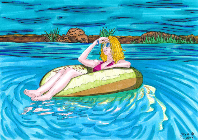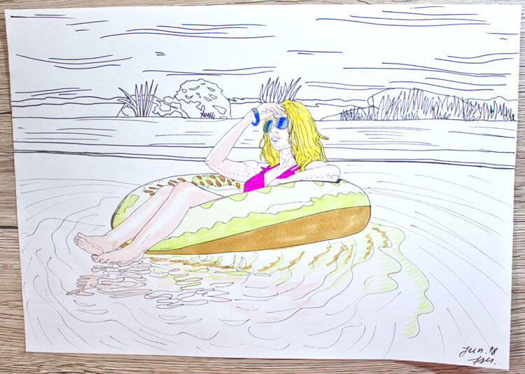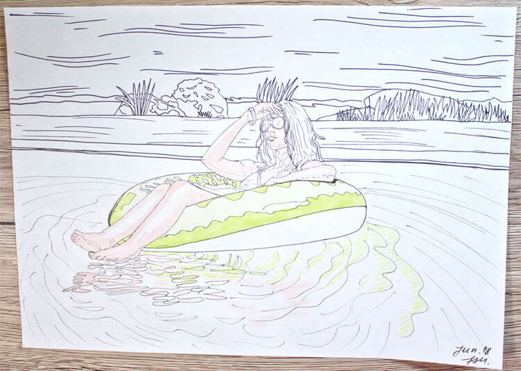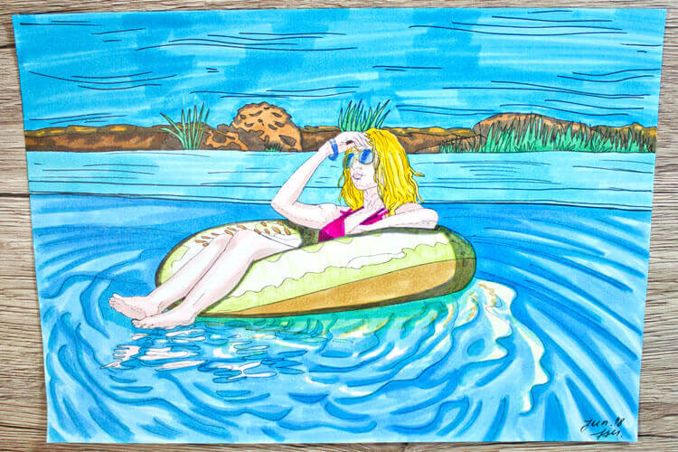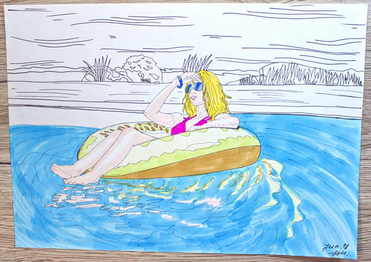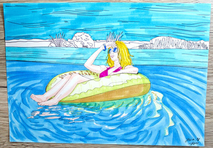 Passend zum Wetter habe ich eine Schönheit im Pool malen mit Markern wollen. In meinem Artikel kannst du dir die Entstehung und das fertige Bild ansehen.