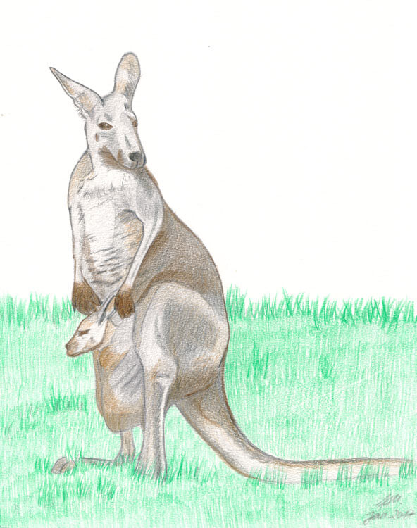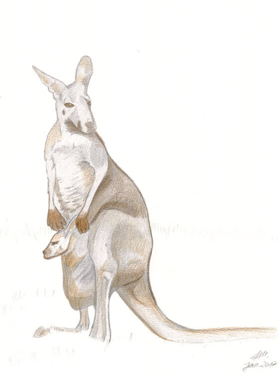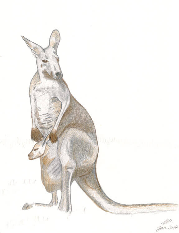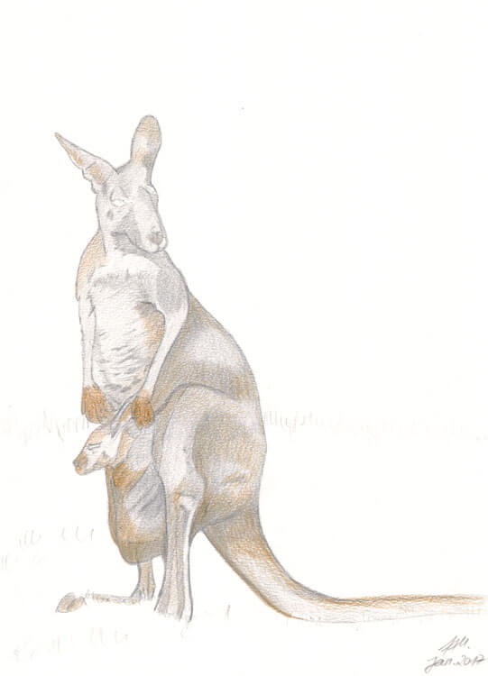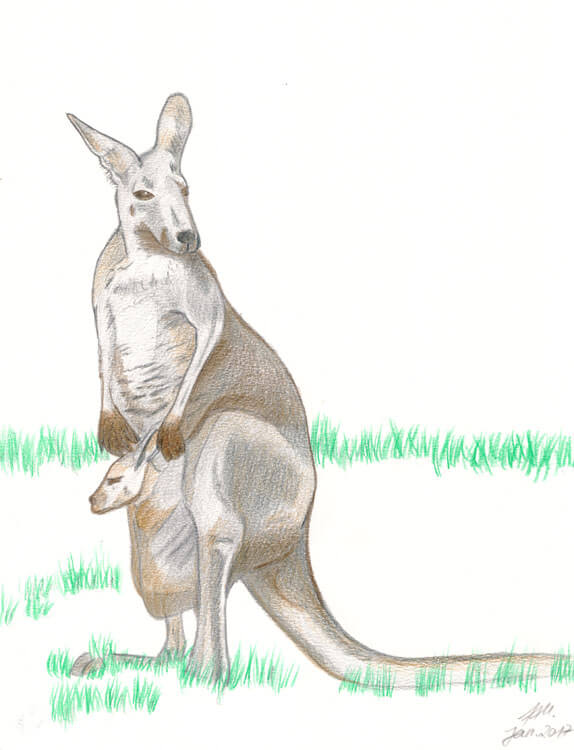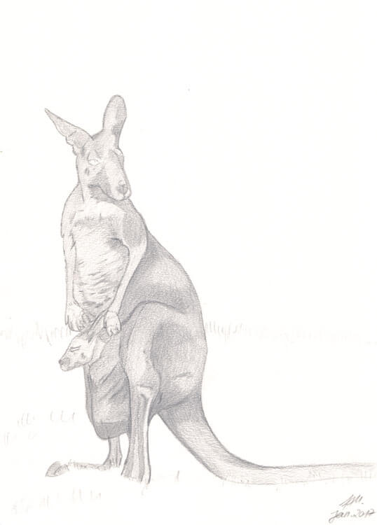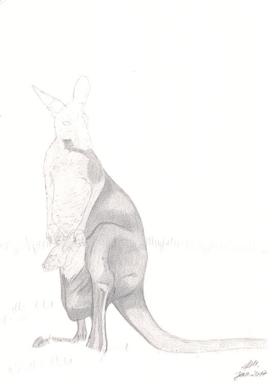 Wer meine ABC-Reihe kennt, der weiß was als erstes passiert: ich suche mir eine Fotovorlage. 🙂 Auch hier wurde ich bei Pixabay fündig und habe mich für ein ganz typisches Motiv entschieden; ein Känguru mit Baby im Beutel. 😉 Auf einem DIN A5 Schmierzettel habe ich grob mein gewähltes Motiv mit Bleistift skizziert.