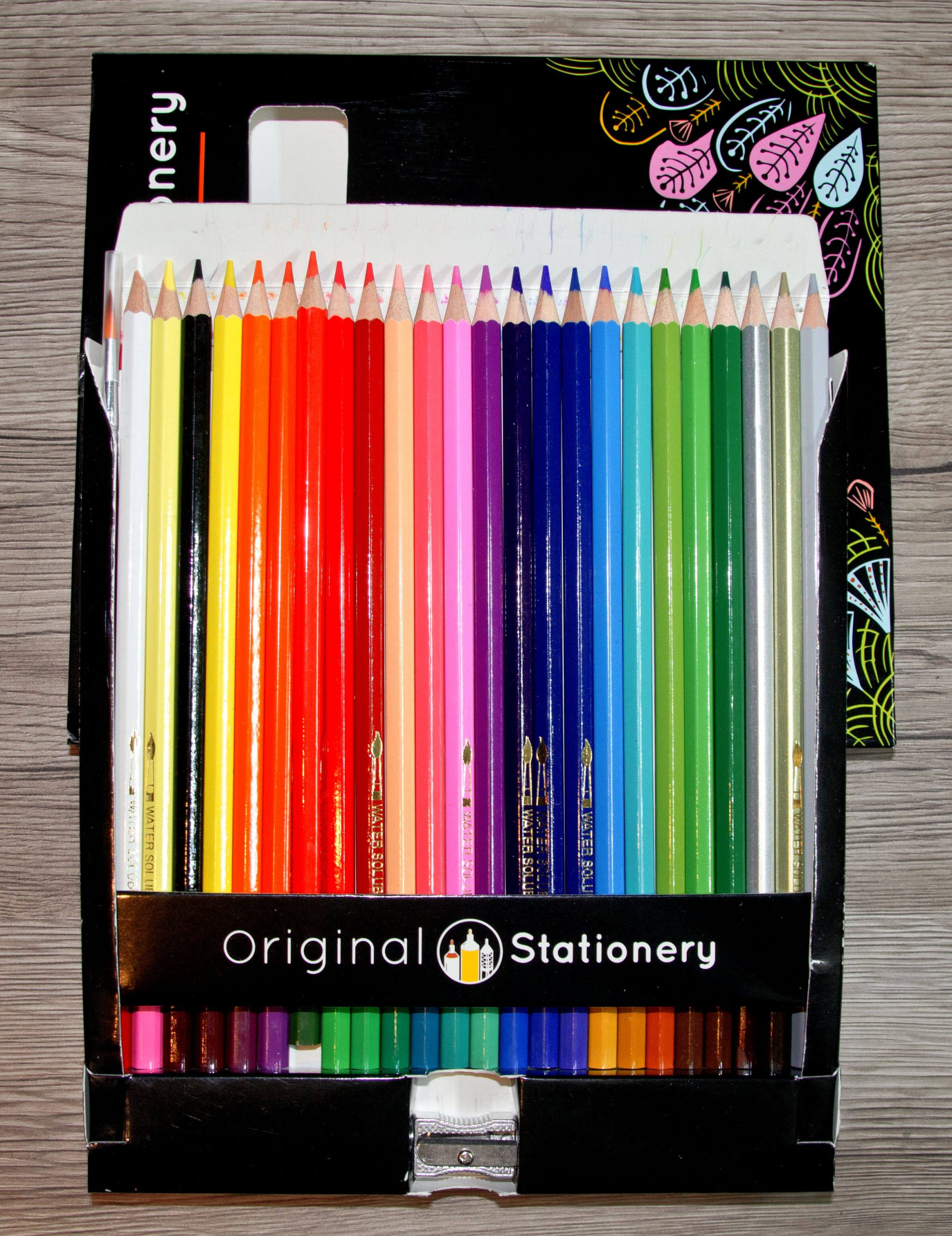 Benutzt habe ich die Aquarellbuntstifte, die ich letztes Jahr (also 2016) zu Weihnachten bekommen habe, und zwar die Original Stationery Watercolour Pencils*. Es sind zwar nicht die teuersten und hochwertigsten Aquarellbuntstifte, aber mit genügen Übung kann man solide mit ihnen arbeiten – außerdem darf die Qualität eines Bildes nicht zu 90% von der Qualität der Materialien, sondern dem Können des Künstlers abhängen; hochwertige Materialien sind dann lediglich das i Tüpfelchen für ein Bild. 😉
