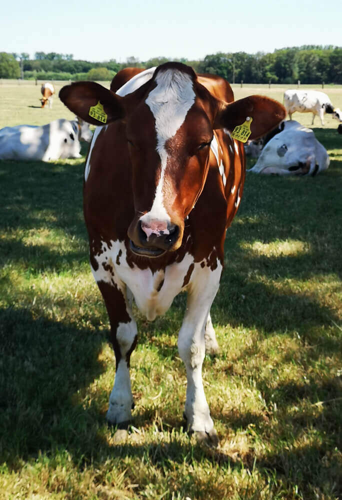Das Fell der Kühe erinnert mich stark an das von Pferden und es fühlt sich auch ziemlich genauso an. Der Nasenrücken ist ähnlich geformt, aber ein paar deutliche Unterschiede im Körperbau lassen einen die Kuh vom Pferd unterscheiden. 😀