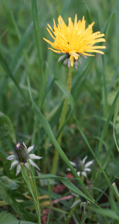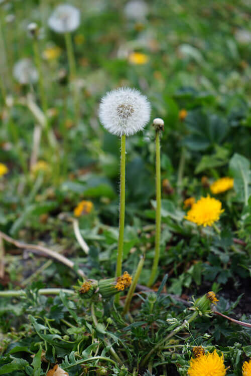 In den letzten Wochen schoss der Löwenzahn bei uns an jeder Ecke in die Höhe. Erst waren überall die gelben Blumen zu erblicken, wenig später standen die Pusteblumen an ihrer Stelle und neben neuen gelben Blumen herum.