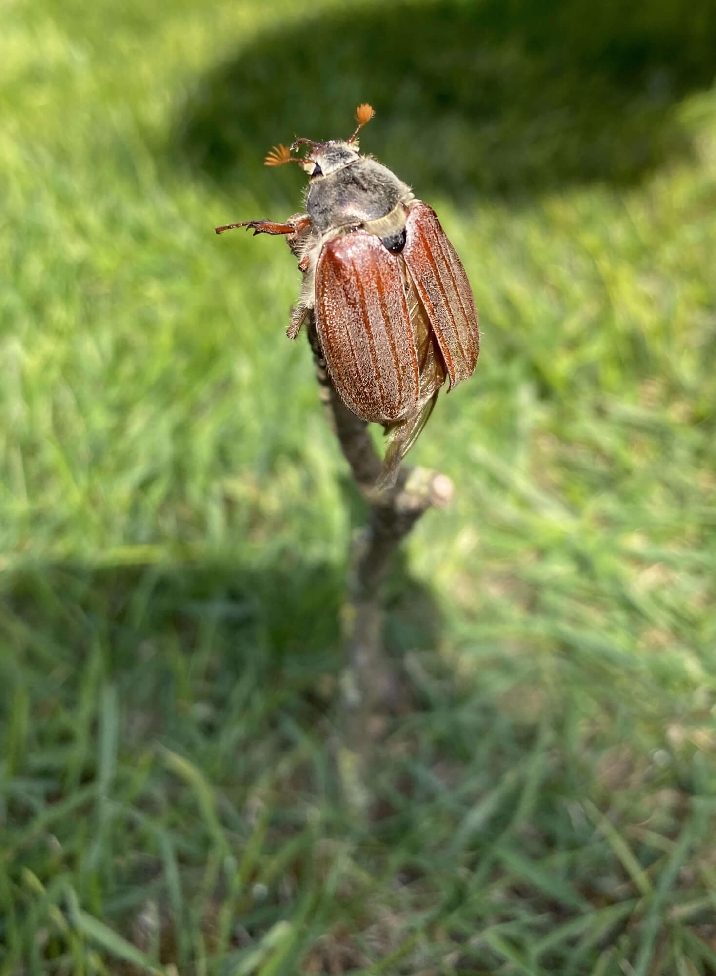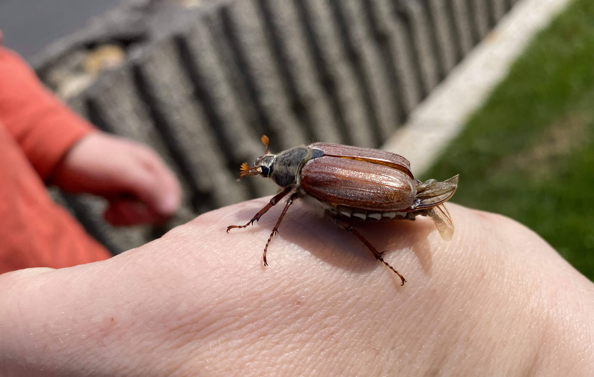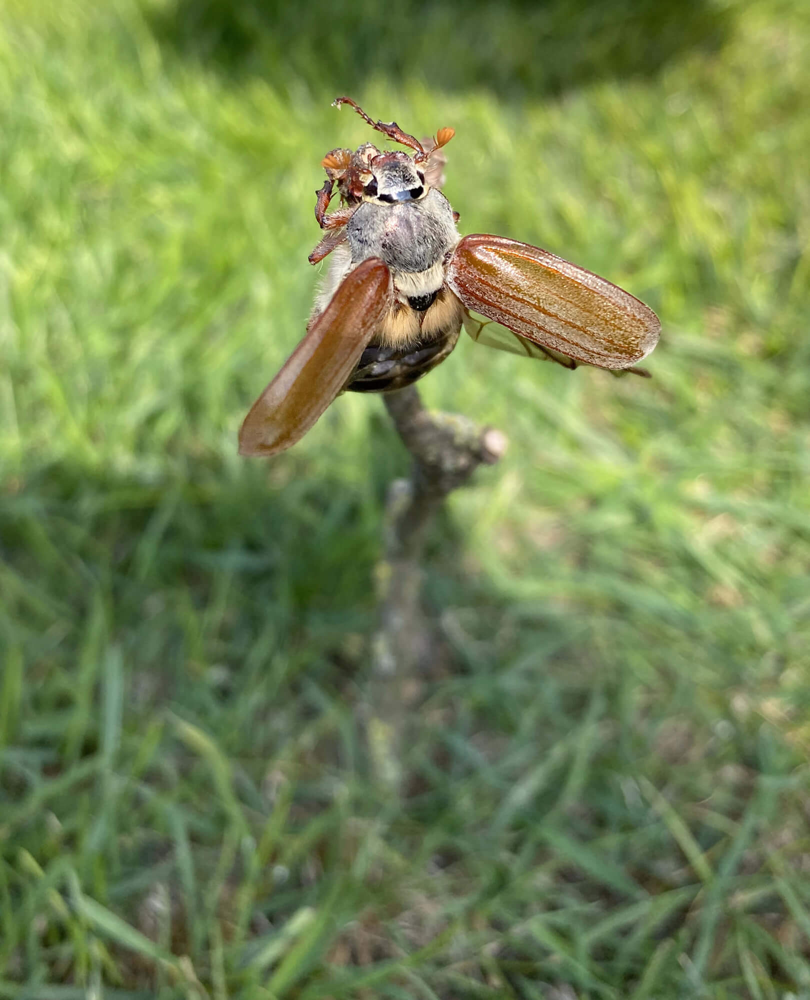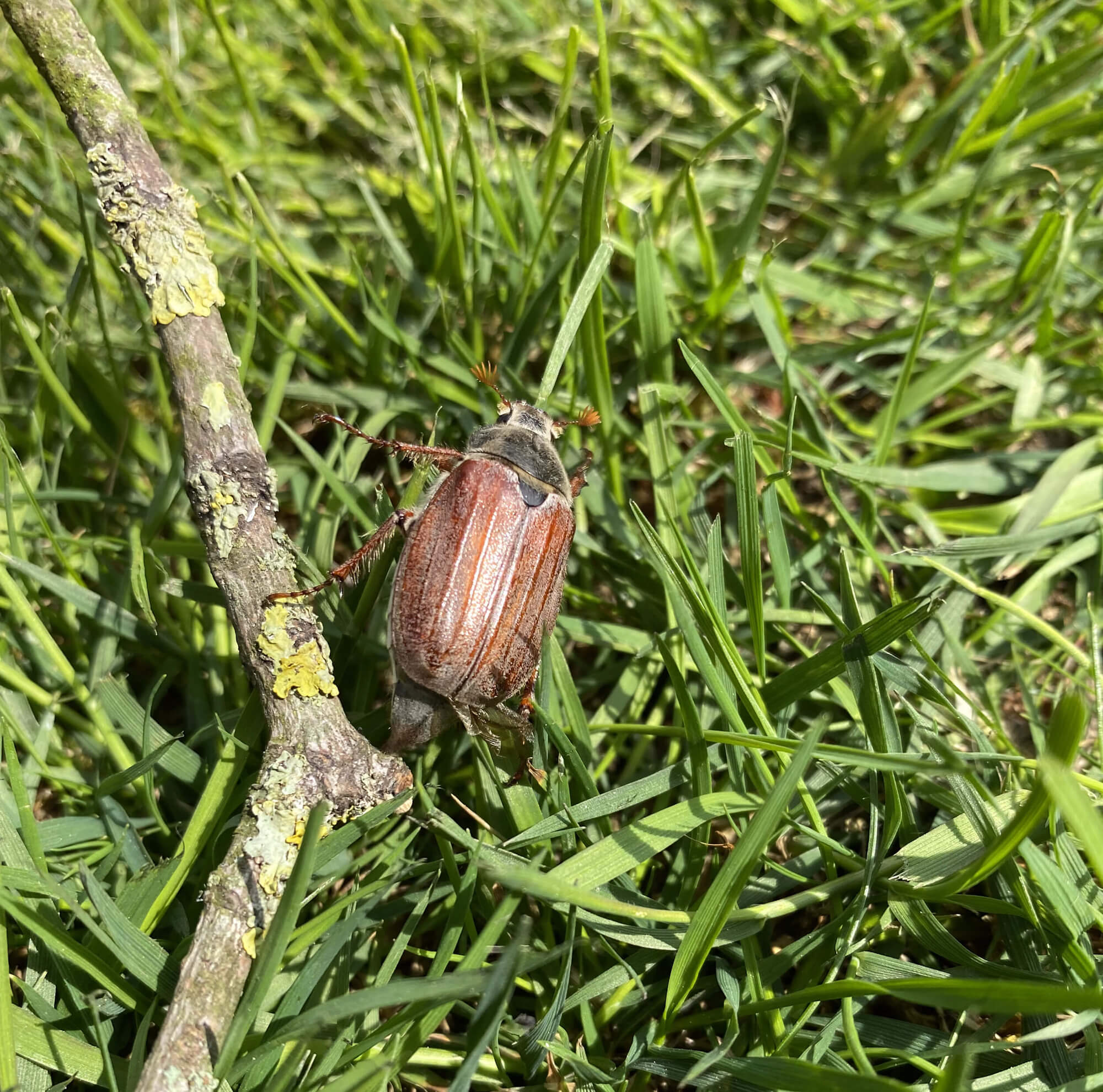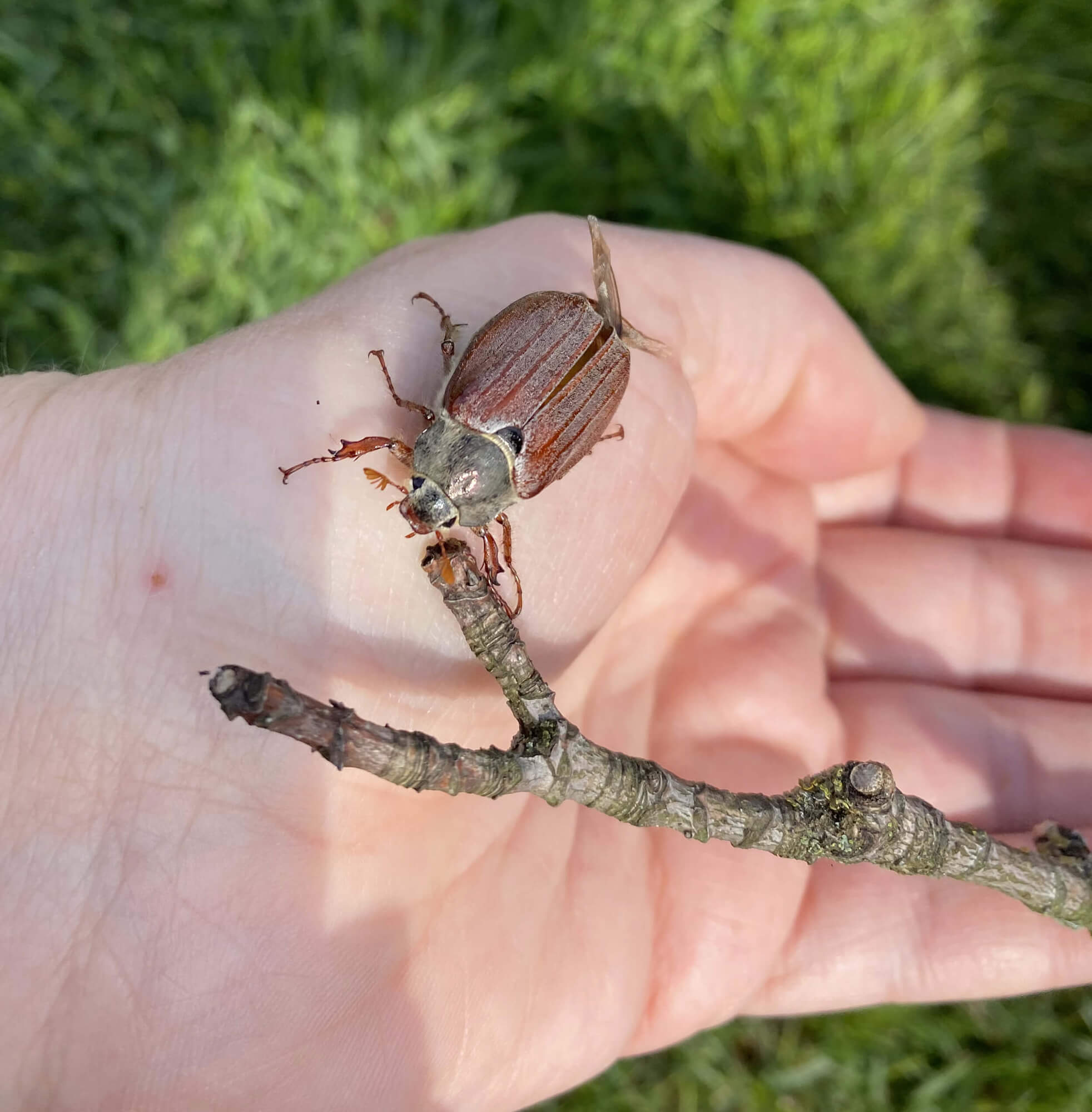 Der kleine Maikäfer krabbelte mir quasi beim Spazierengehen über den Weg und ich habe ihn kurzerhand mit einem Stöckchen aufgesammelt um ihn meiner Tochter zu zeigen. Der kleine Akrobat hat sich tapfer darauf gehalten: