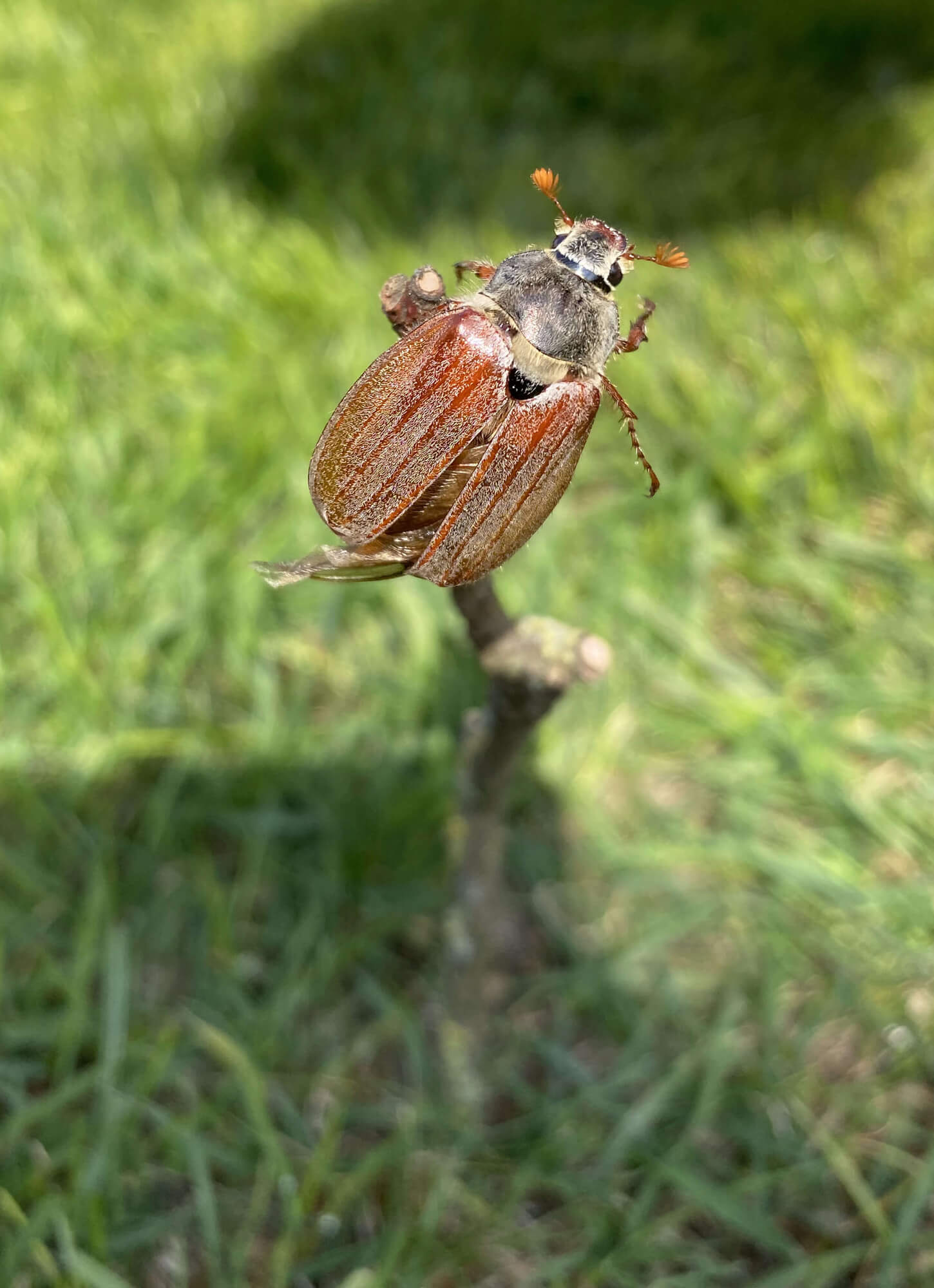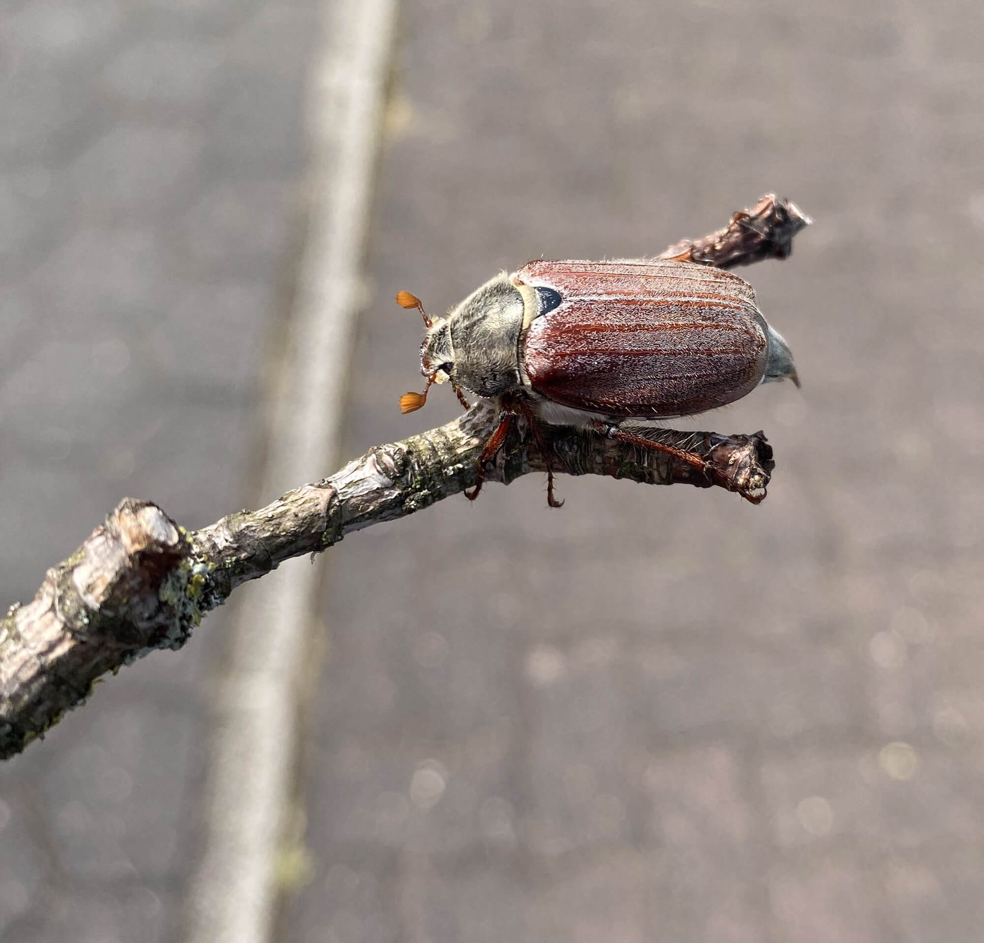 Man weiß, wann Frühling ist, wenn die Tulpen blühen, die Bäume grünen und die ersten Maikäfer kommen. Letzteres wird leider immer seltener, doch ab und an habe ich das Glück doch einen oder mehrere der kleinen Kerlchen anzutreffen. Ich muss dann immer an Max und Moritz und den armen Onkel Fritz denken. 😀