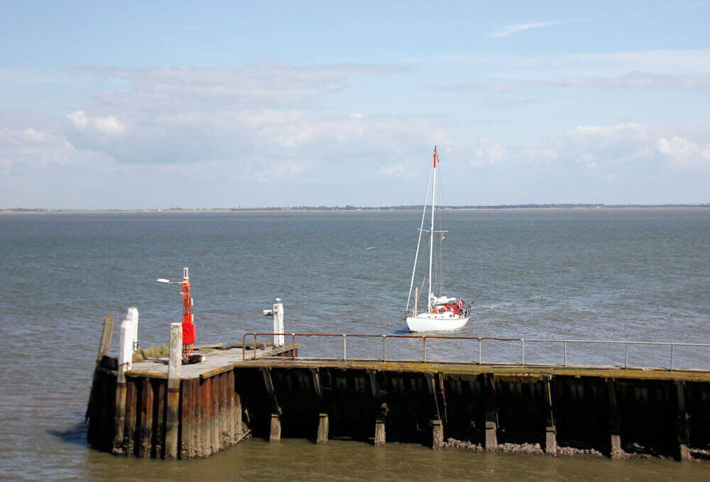 Die Zeichenvorlagen in diesem Artikel sind verschiedene Fotos eines Segelschiffs auf dem Meer, welches in einen Hafen einläuft.