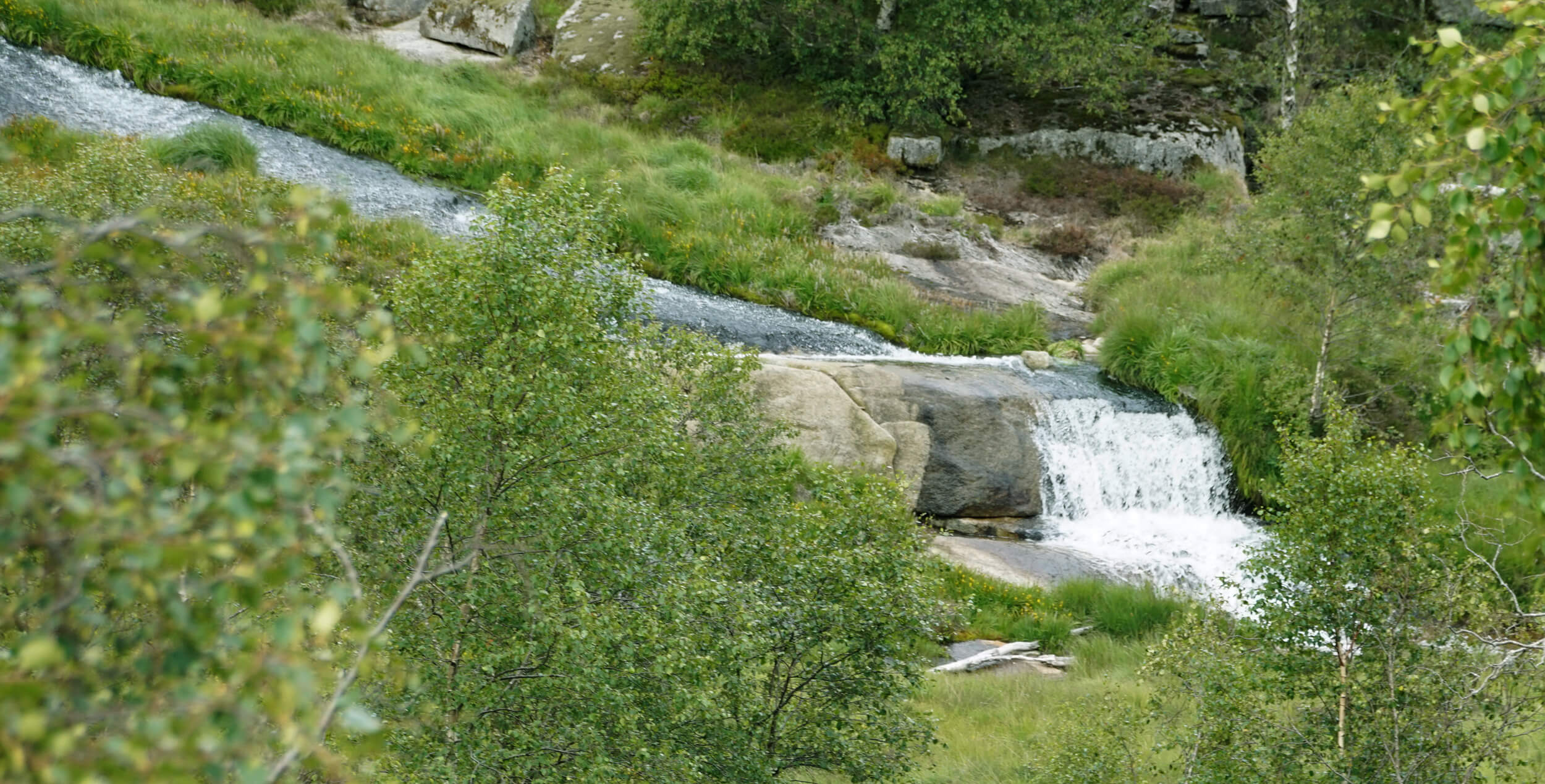 Die Wanderwege waren durch blau Markierungen gekennzeichnet, die teilweise einer Schnitzeljagd glichen, da sie nicht immer leicht zu finden waren. Aufgrund der bergigen und wilden Landschaft Norwegens im Inland eröffnen sich zahlreiche Möglichkeiten, Wasserfälle an verschiedenen Stellen zu bestaunen.