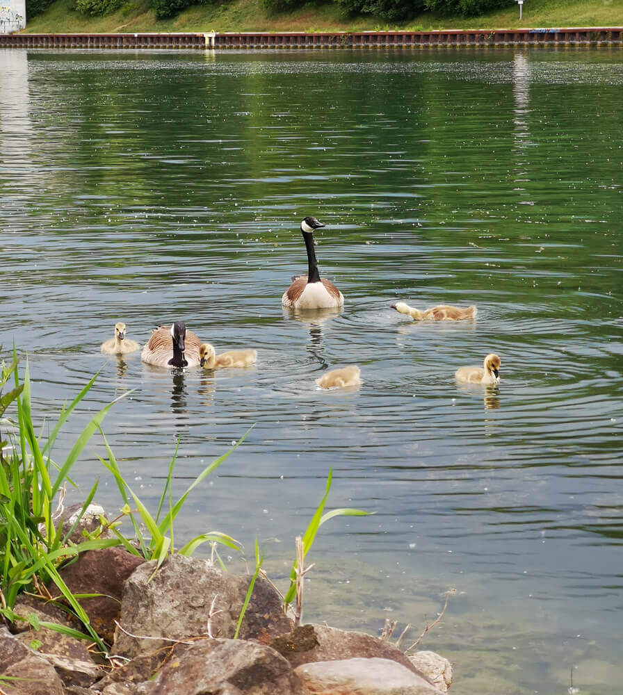Dieses Jahr hatten verschiedene Gänsepaare auch recht viele Küken, die immer dicht bei ihren Eltern mit geschwommen sind. Die Jungvögel sind natürlich besonders putzig mit ihren flauschigen Federn. 😀