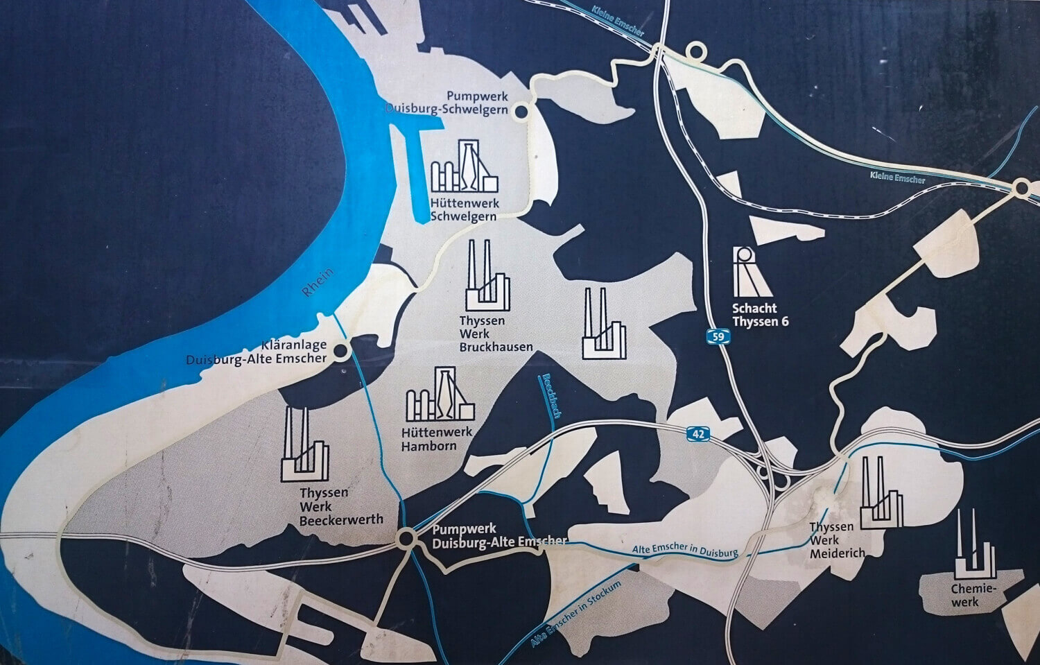 Von einem Aussichtspunkt, welcher auf einer Abraumhalde gelegen war, hatte man einen besonders schönen Rundumblick über das Gelände und die Industriekultur in Duisburg.
