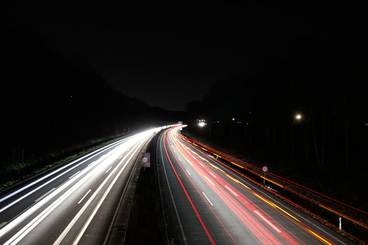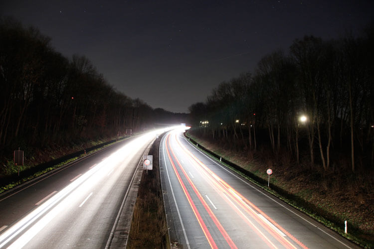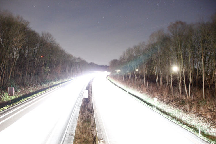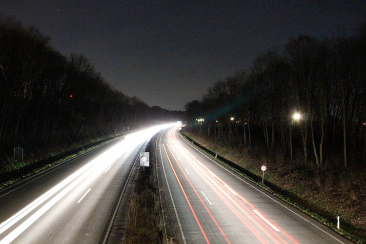 Wir haben stattdessen gewitzelt, dass ein Blitz, besser noch ein Infrarotblitz, die Autofahrer eher an die Geschwindigkeitsbegrenzung erinnern würde als zwei Leutchen auf der Brücke mit Stativ. Und hier zeige ich eine kleine Auswahl der Fotos, die bei der Langzeitbelichtung an der Autobahn entstanden sind: