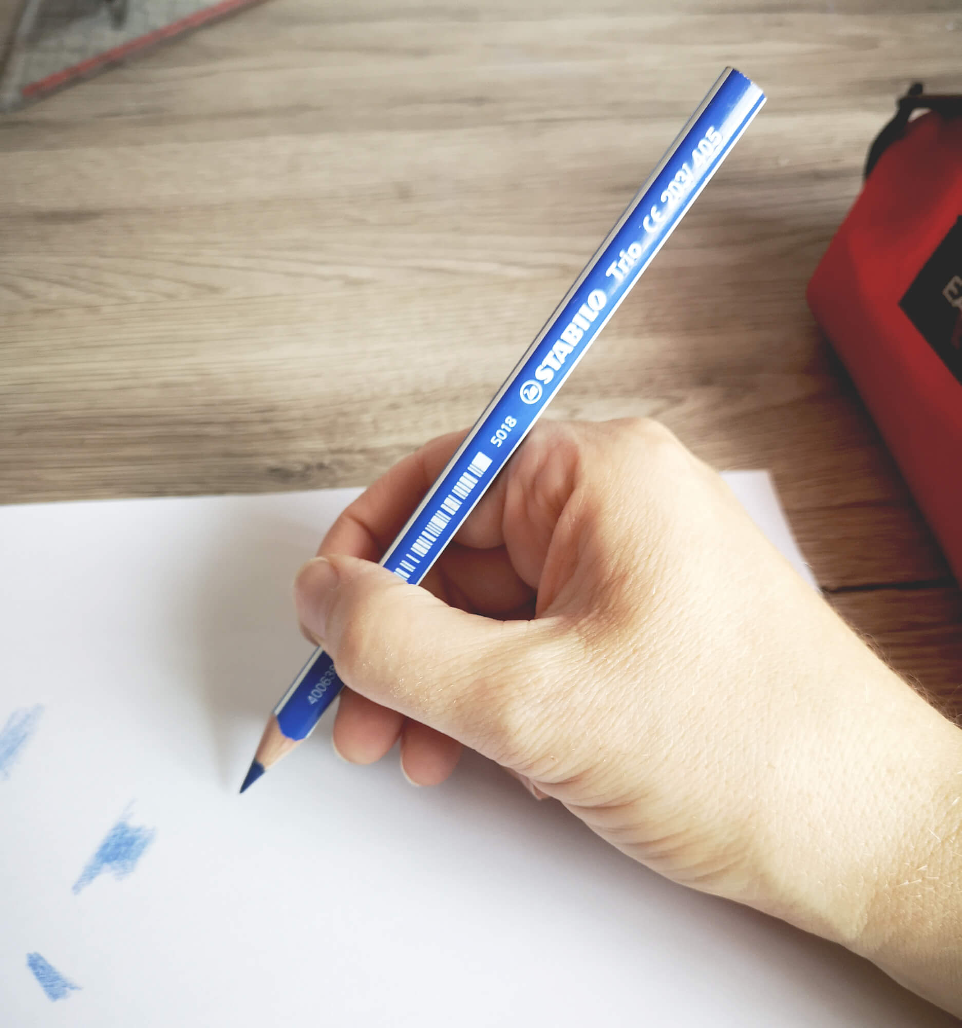 Wenn ich deckend malen möchte, erhöhe ich etwas den Druck beim Malen. Dazu fasse ich den Stift dann auch weiter unten am Schaft an. Aber auch hier achte ich darauf, dass ich mit der Hand nicht zu tief rutsche, wie es beim Schreiben der Fall gewesen wäre, denn so eine Handhaltung hat bei mir traditionell zu Krämpfen in der Hand geführt.
