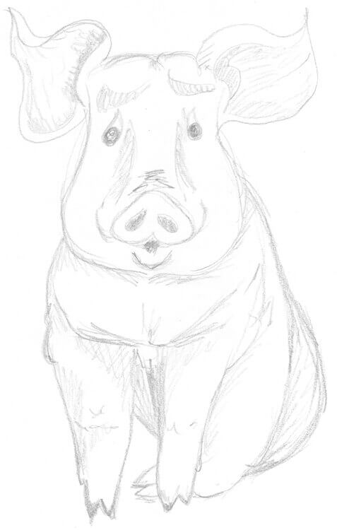 Sitzendes Schwein zeichnen
