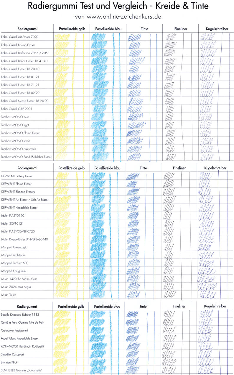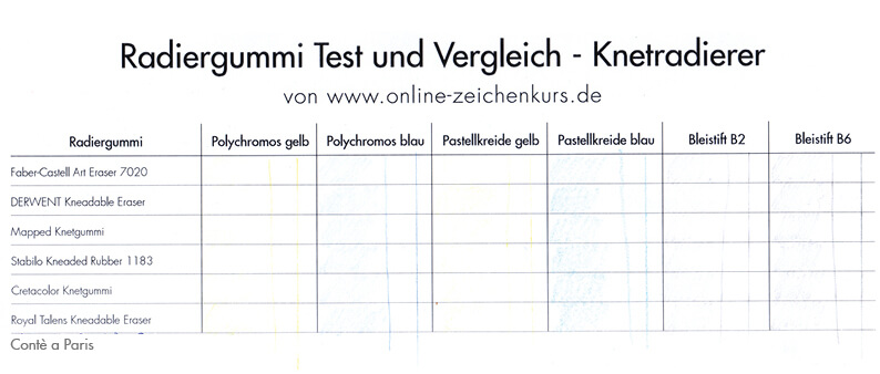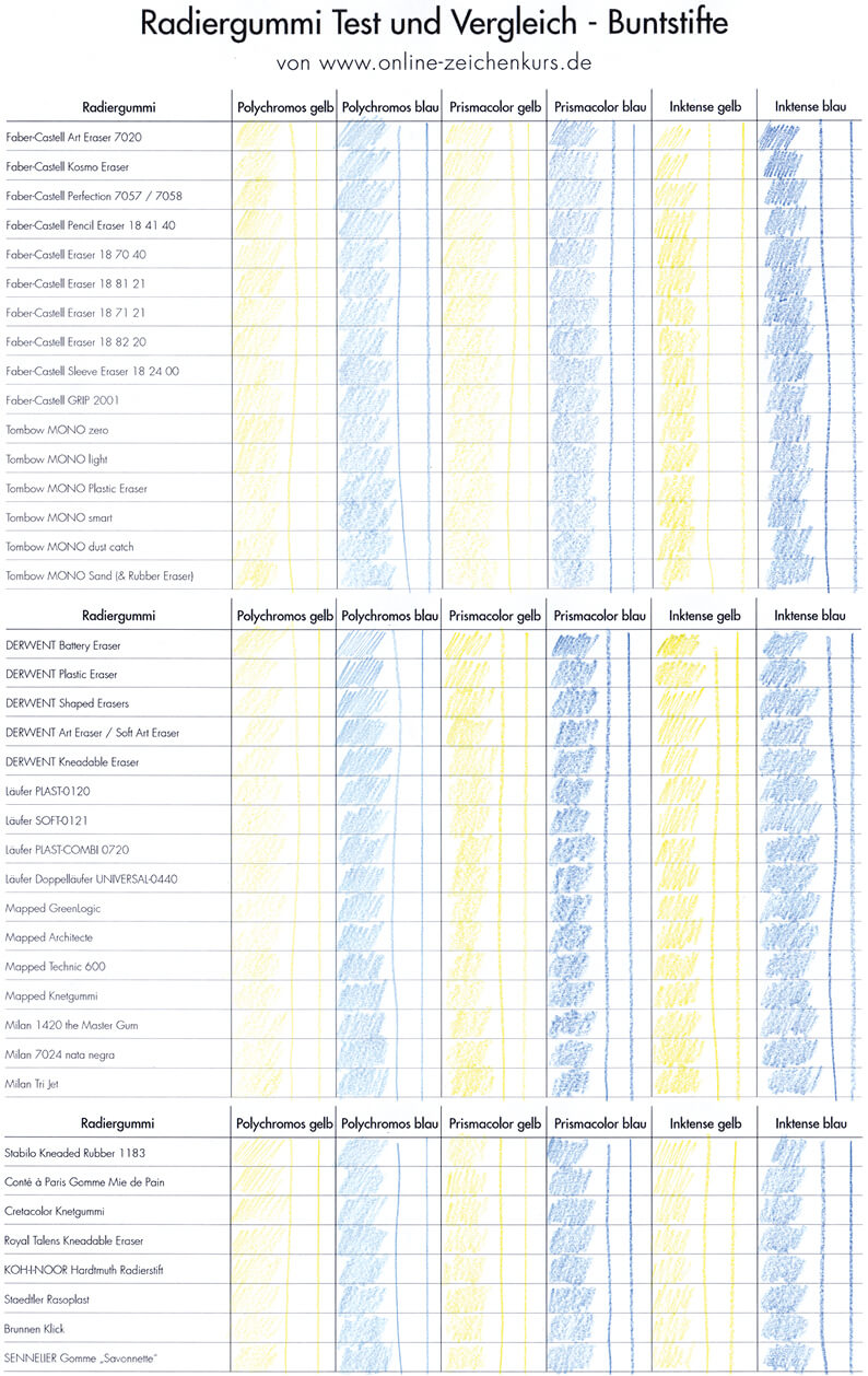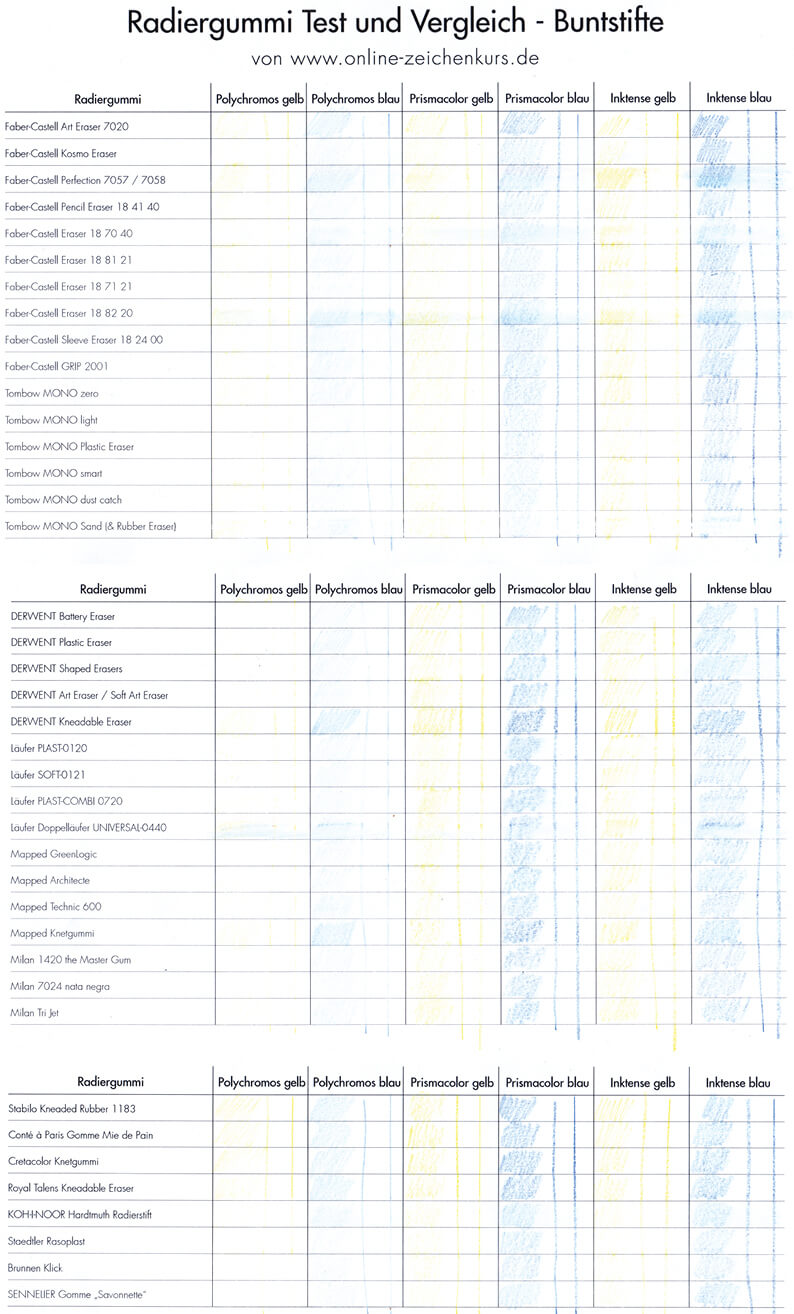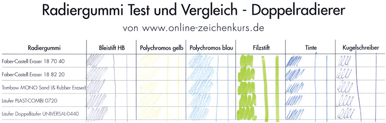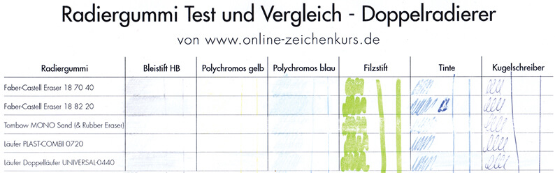 Ein paar der besonderen Radiererarten habe ich gesondert getestet um deren speziellen Eigenschaften gezielt zu überprüfen.