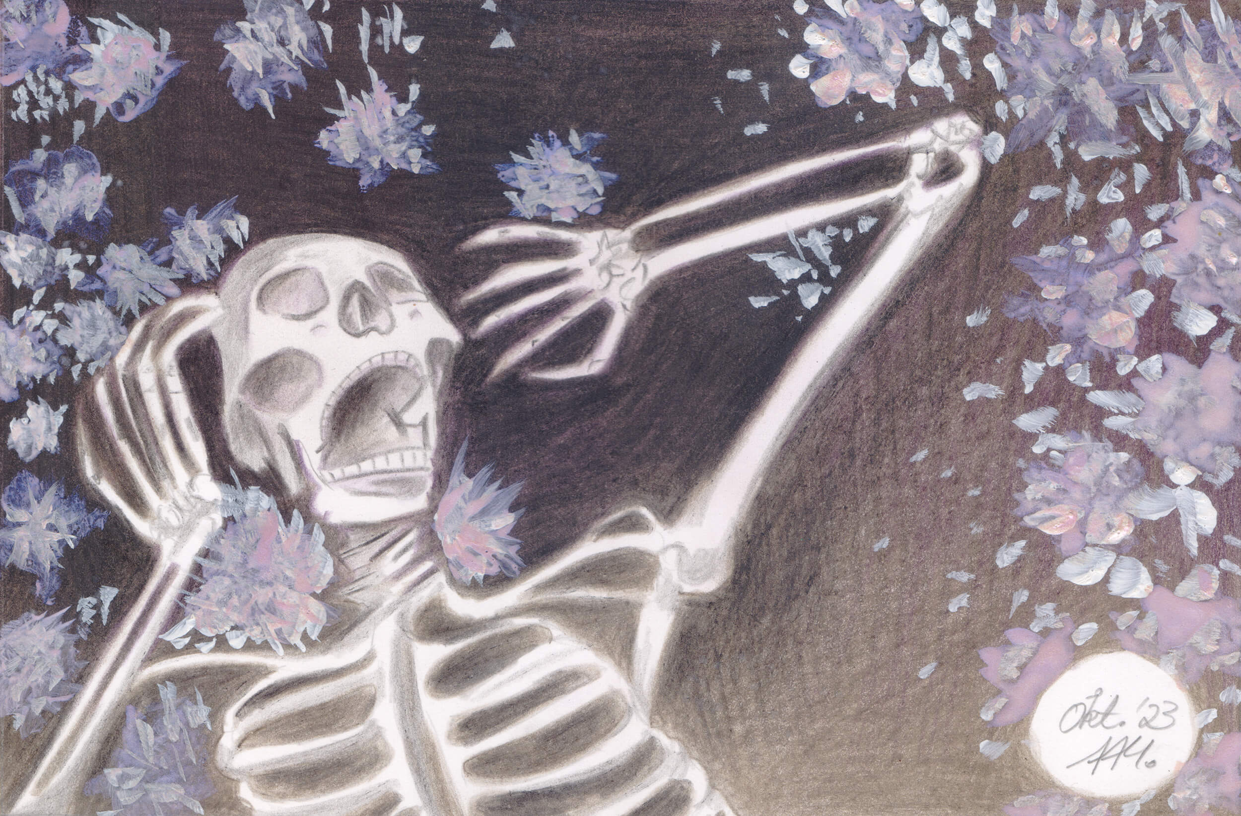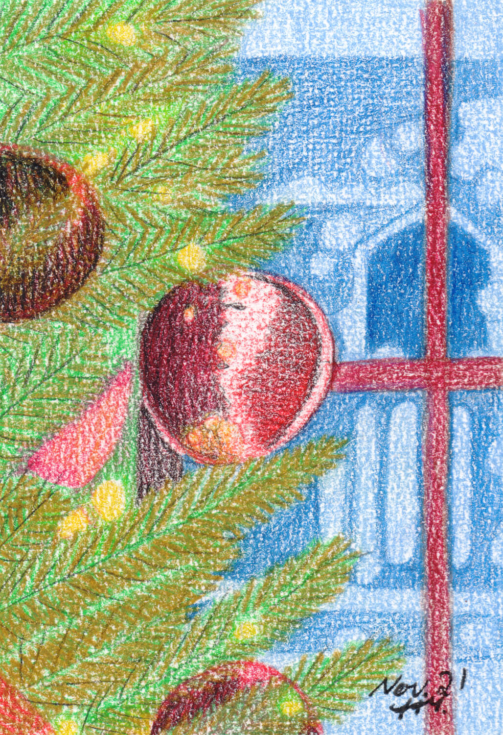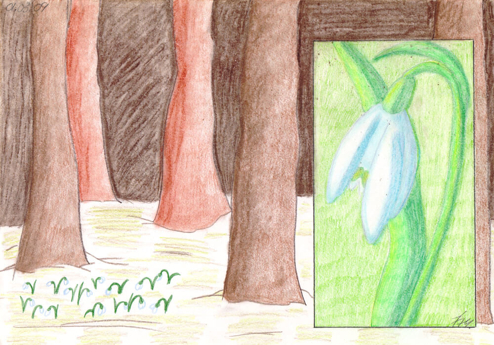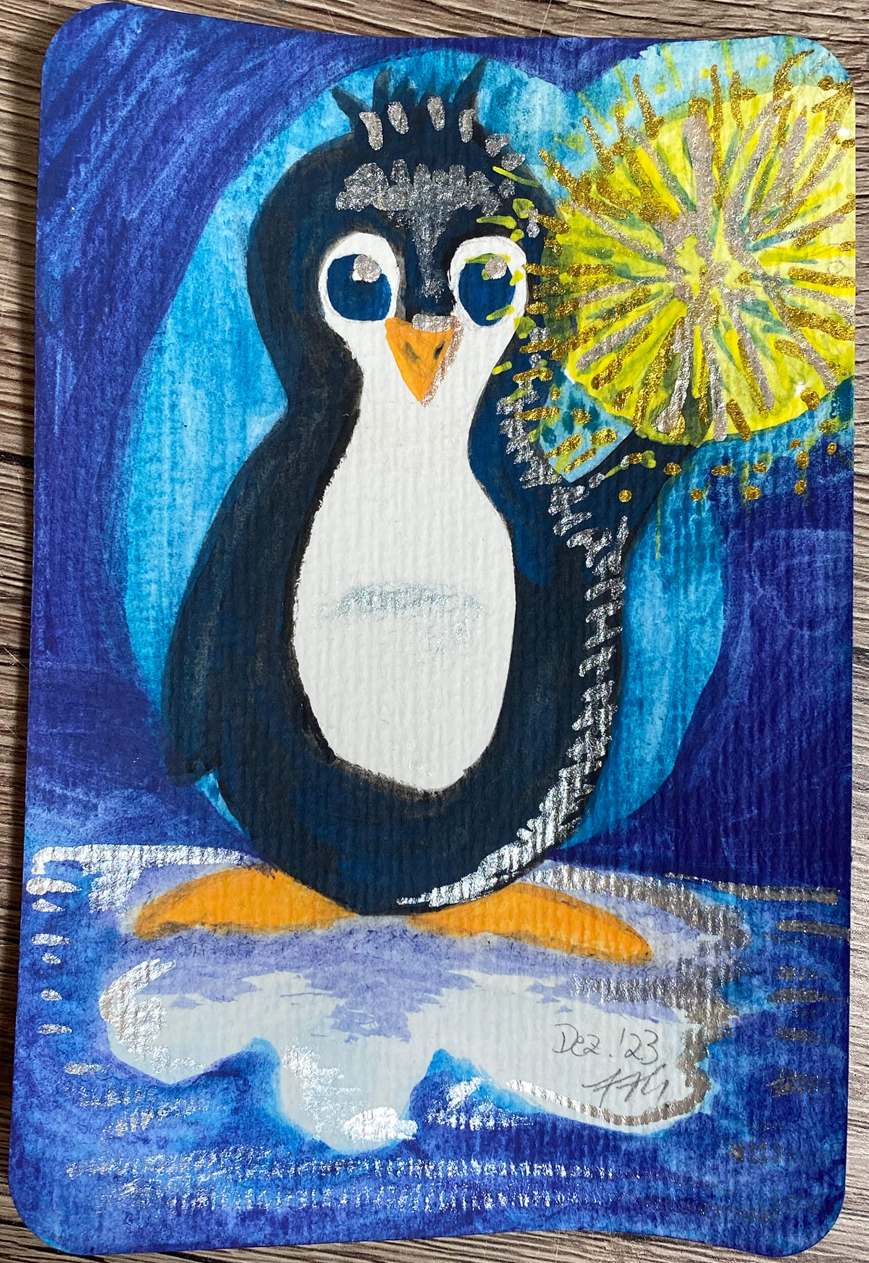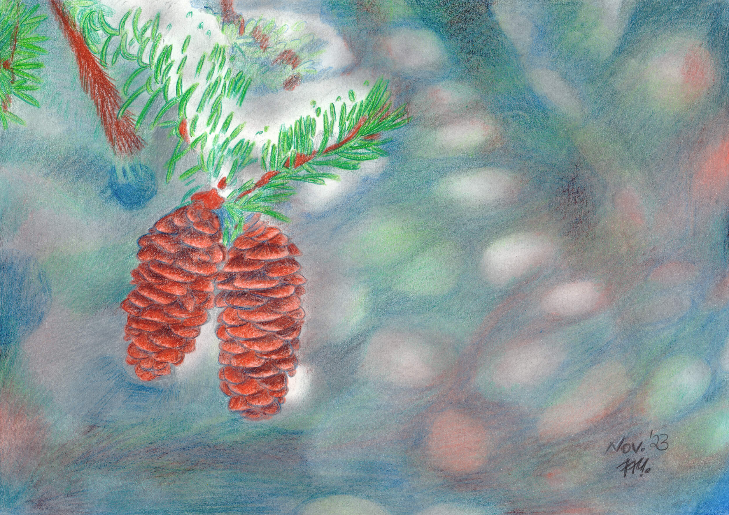 Auch dieses Jahr war, bedingt durch meine Depression, wenig ergiebig an Bildern. Dennoch habe ich ein wenig ausprobiert – unter anderem das Malen auf buntem Tonpapier und das Kolorieren mit Polychromos Buntstiften.