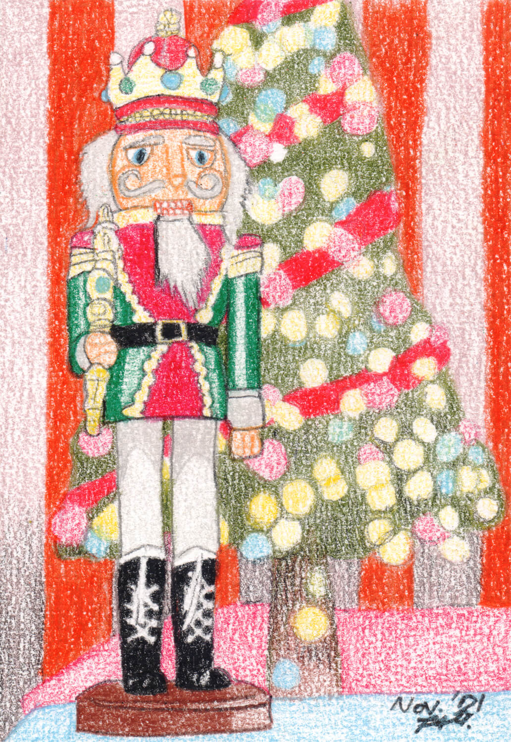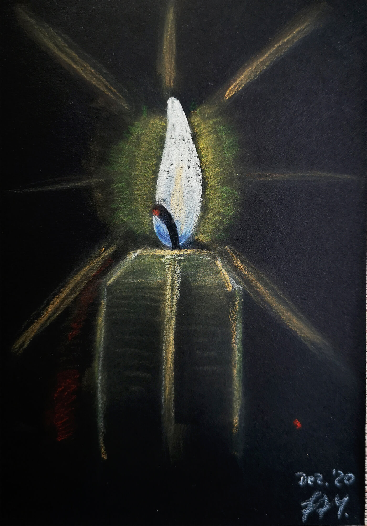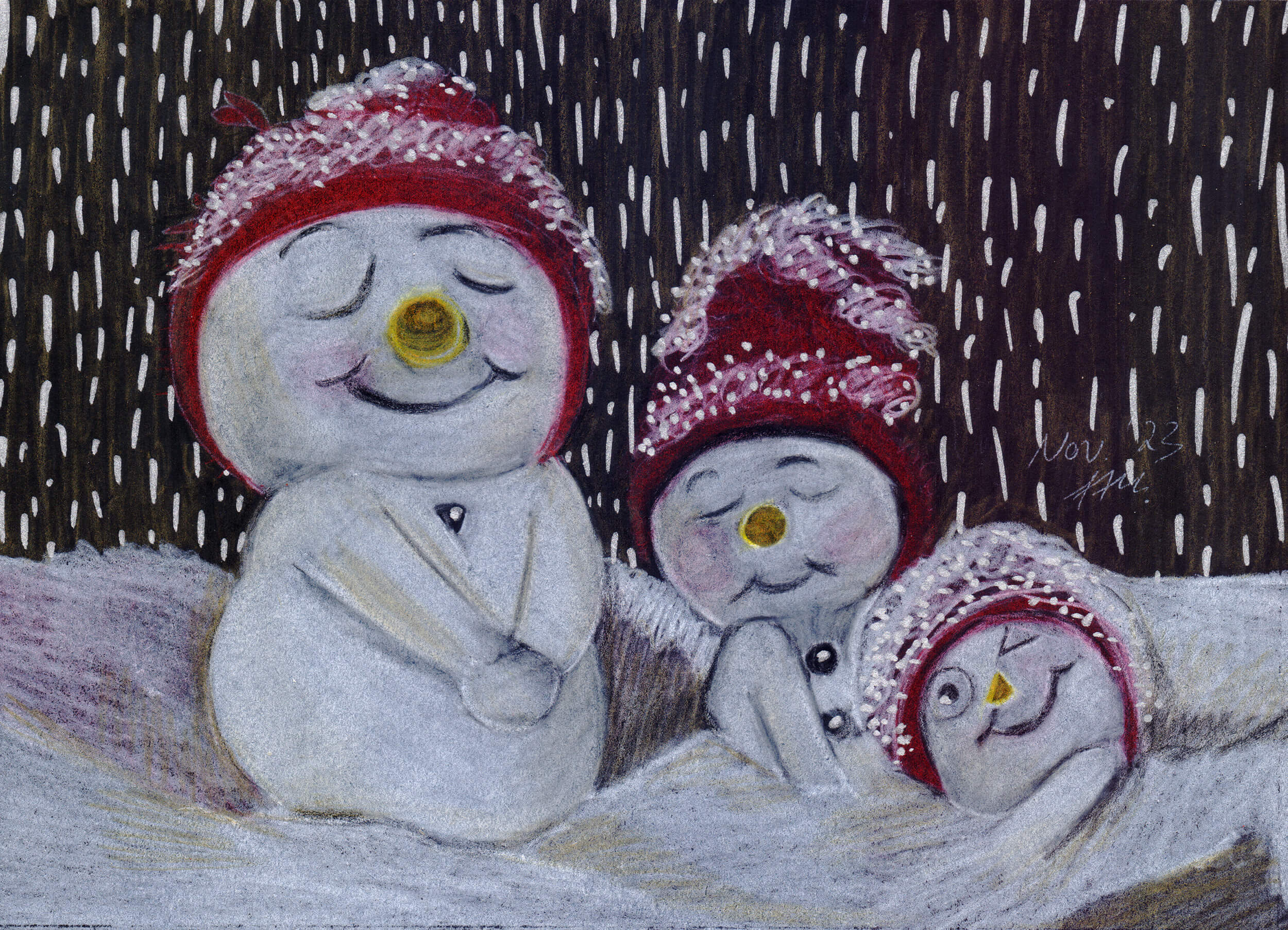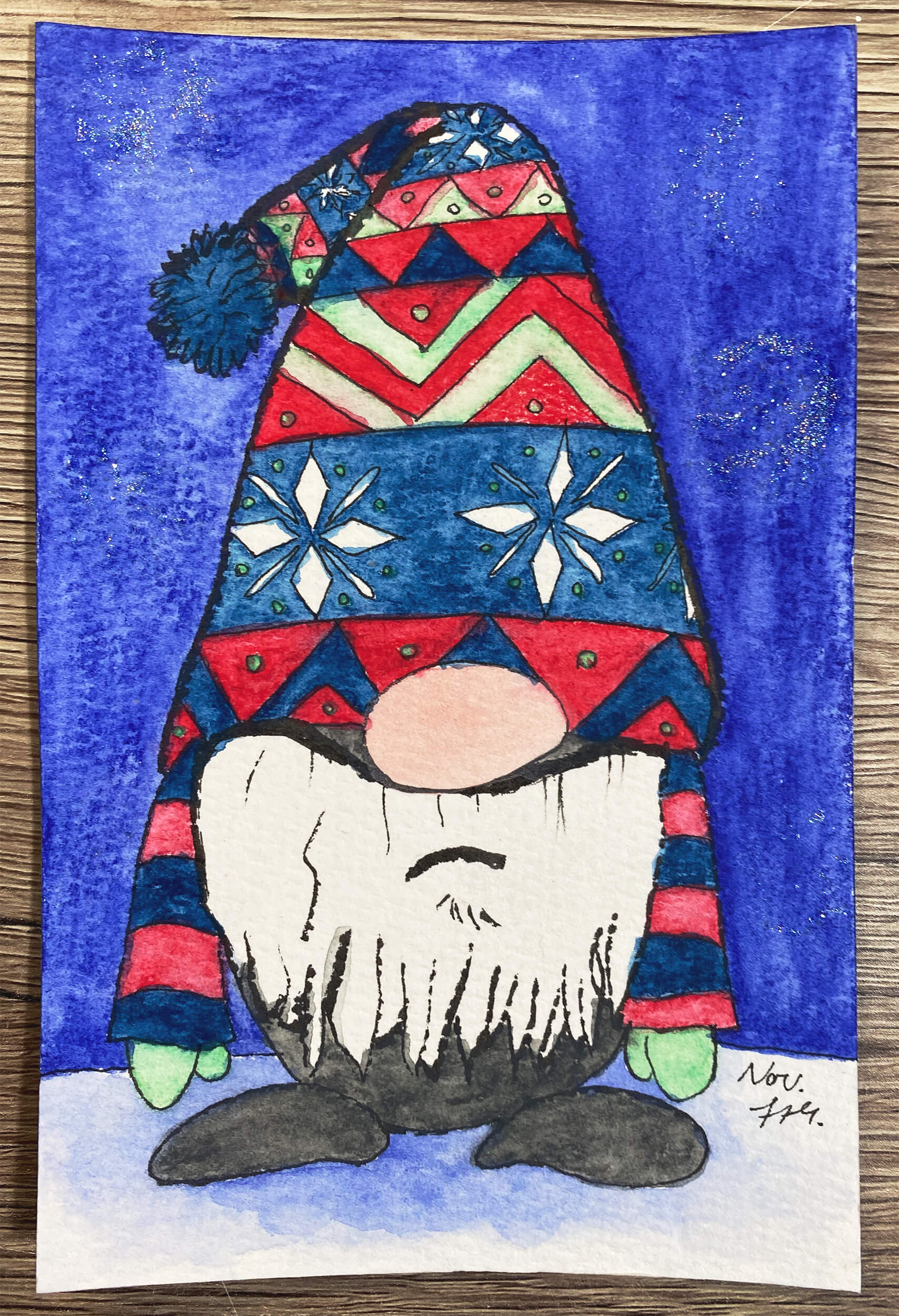 Auch dieses Jahr war, bedingt durch meine Depression, wenig ergiebig an Bildern. Dennoch habe ich ein wenig ausprobiert – unter anderem das Malen auf buntem Tonpapier und das Kolorieren mit Polychromos Buntstiften.
