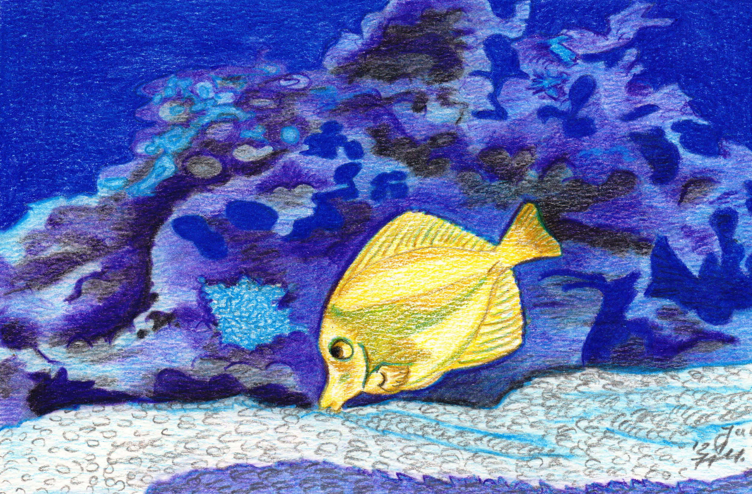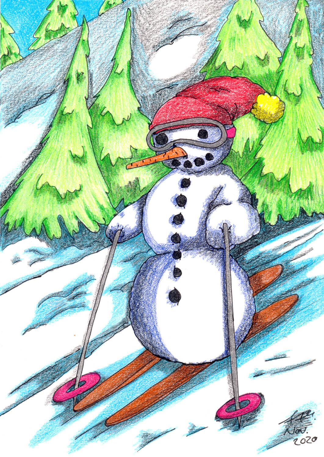 In diesem Jahr habe ich zunächst meine Buntstifttestreihe fortgeführt. Daneben habe ich mich ein wenig mit Aquarell ausprobiert und verschiedene Markerbilder gemalt.