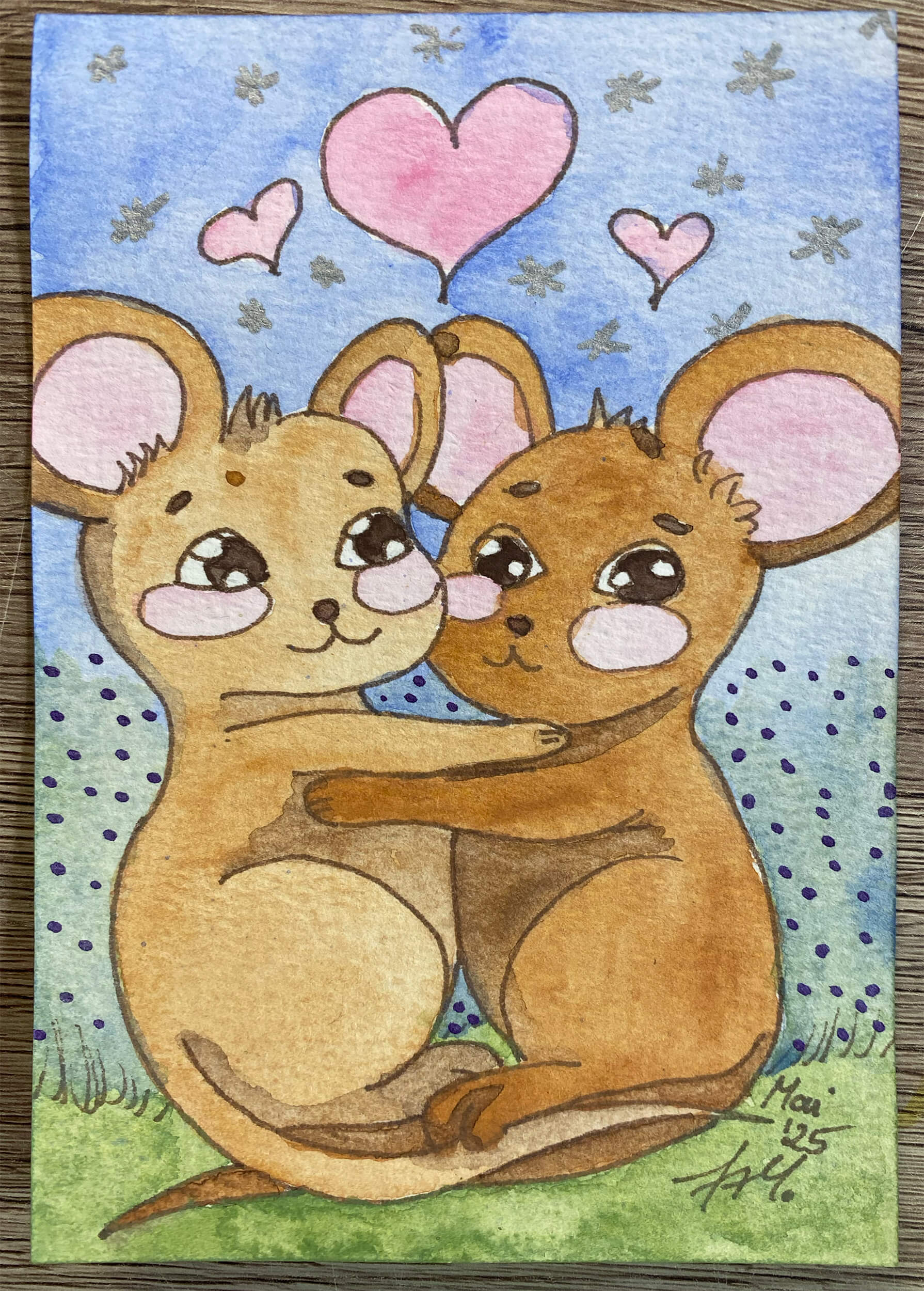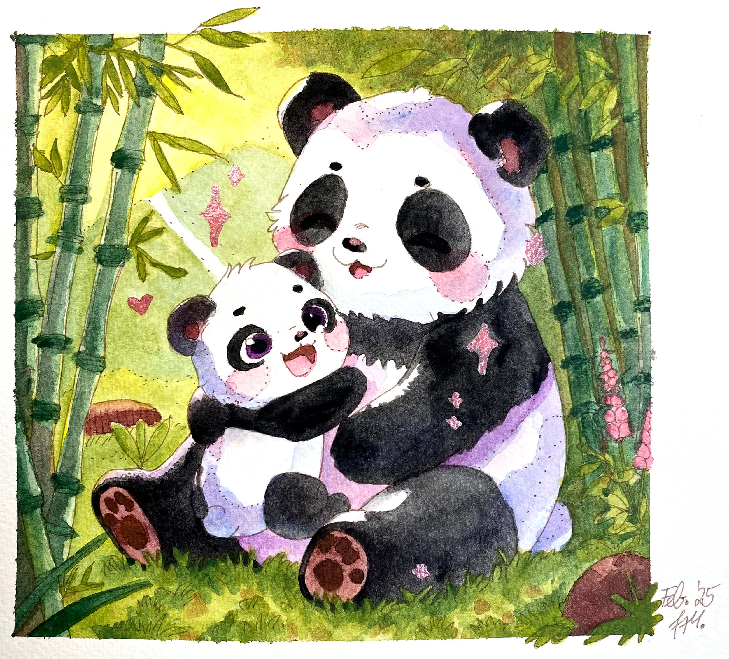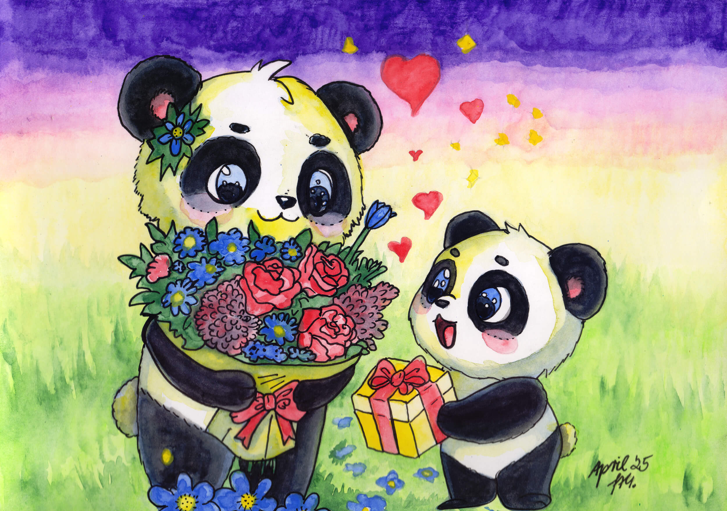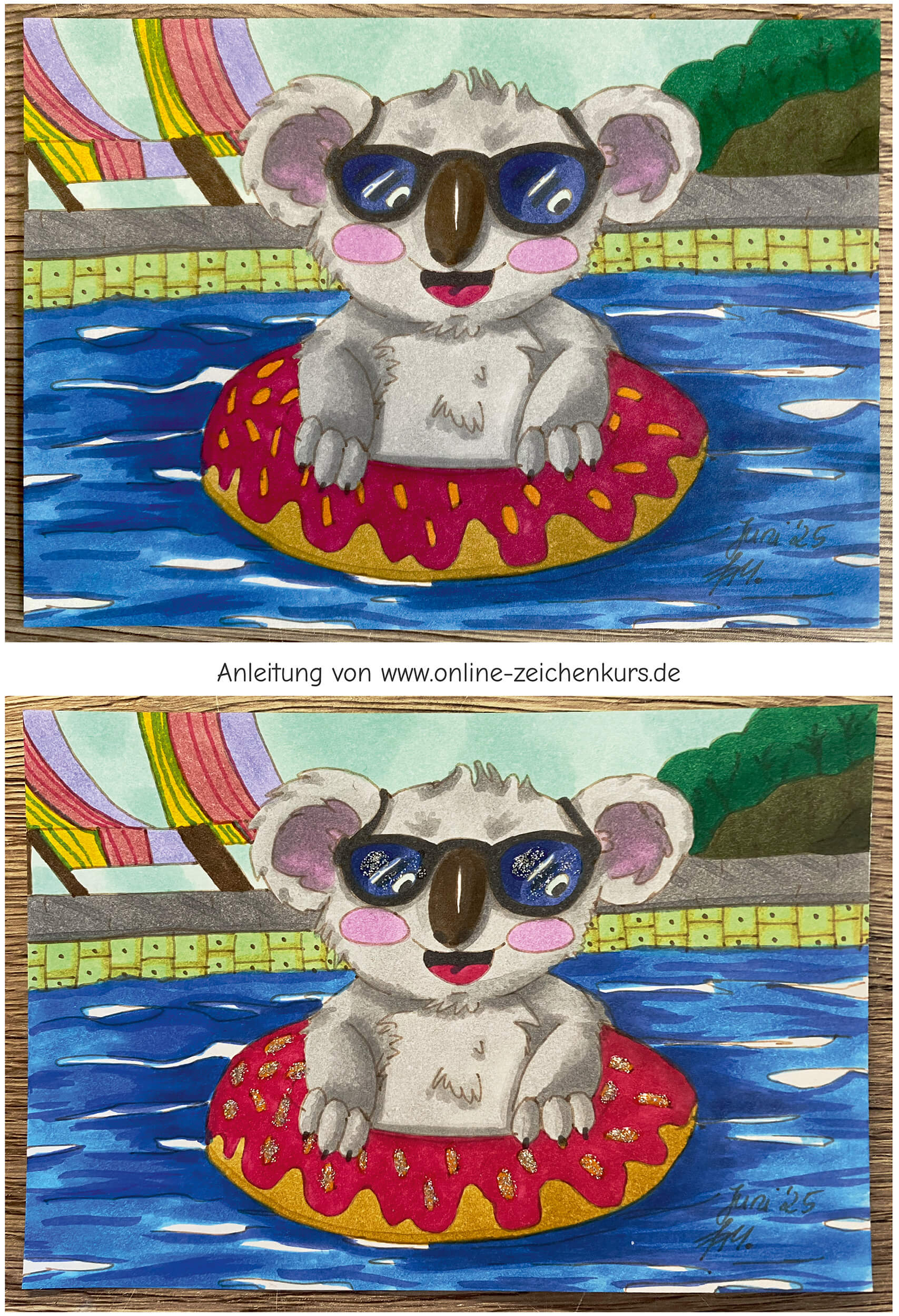 Dieses Jahr ist überwiegend geprägt von meiner Tochter (Pandabären) und es kamen vermehrt KI-Vorlagen zum Einsatz. Zunächst habe ich Acrylmarker ausprobiert auf Acrylpostkartenpapier. Dann im Lauf des Jahres habe ich abwechselnd Buntstift, Aquarell und Marker verwendet, auch um einige Review-Artikel zu verschiedenen Materialien zu vervollständigen.