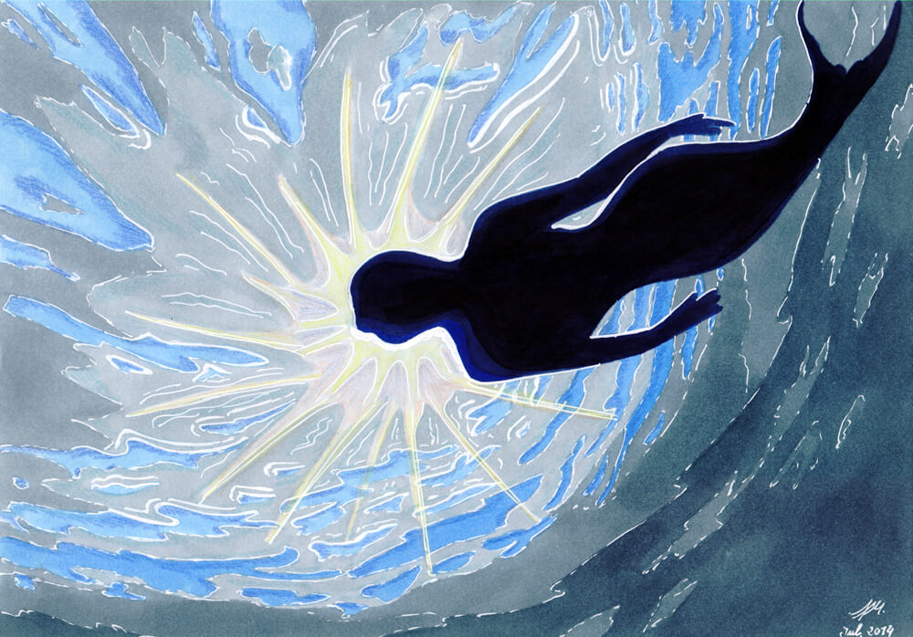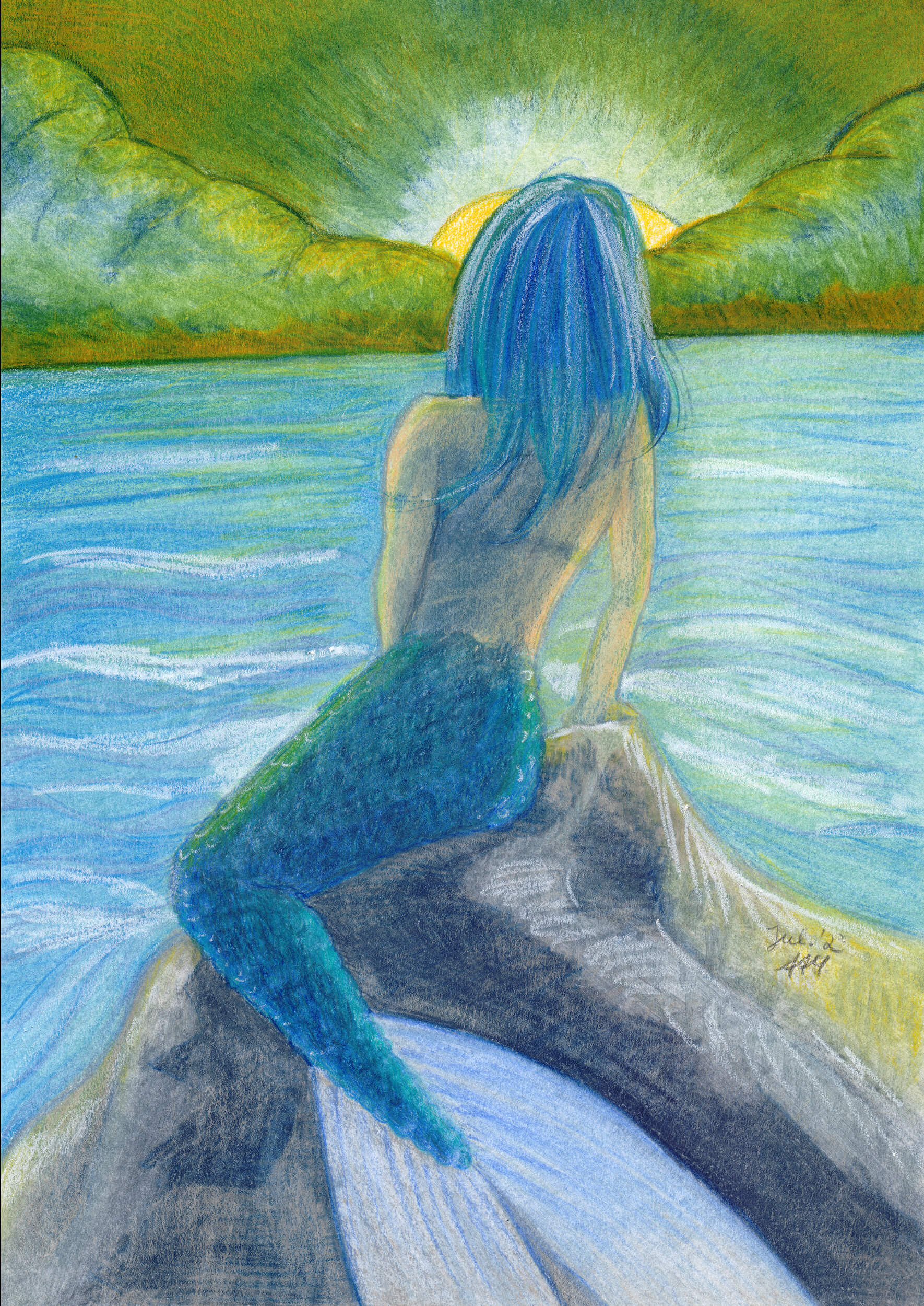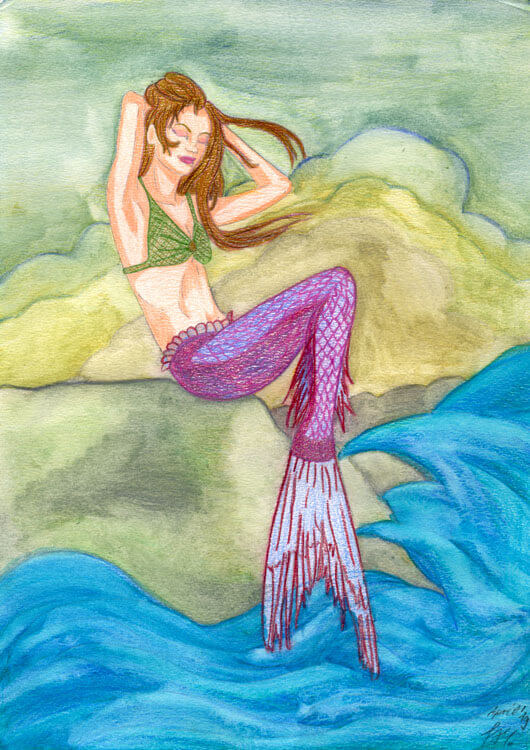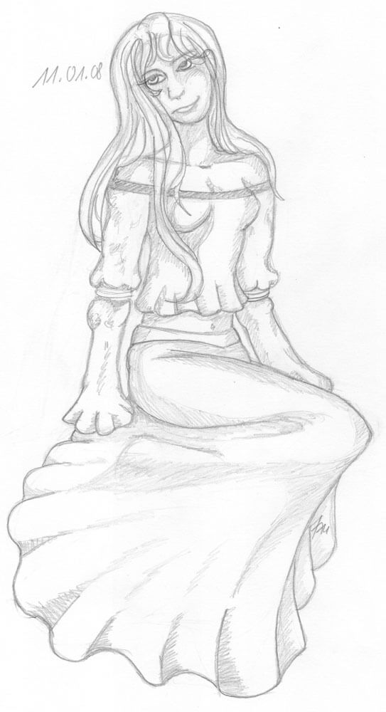 Auch dieses Jahr ist geprägt von weiblichen Porträts fiktiver Frauen – diesmal ist eine Magierin dabei, der Auftakt zu einer kommenden Serie von magischen und kriegerischen Motiven. Meine Meerjungfrau habe ich, inspiriert vom Film Splash*, ein wenig abgewandelt.