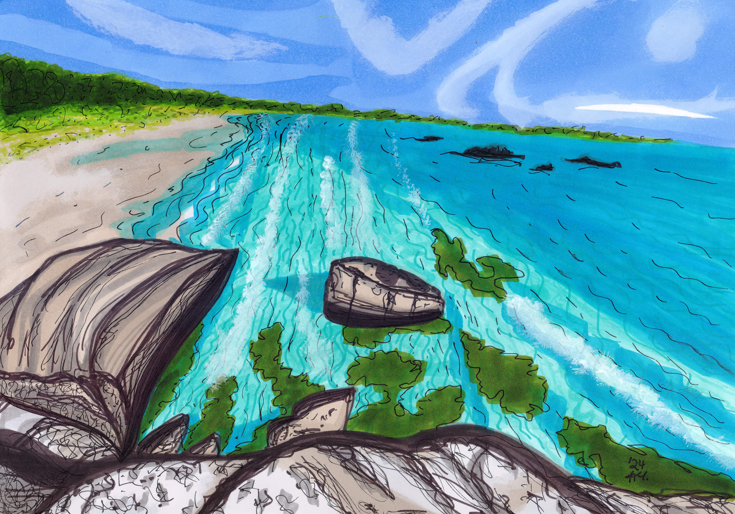 Neben meiner fortgesetzten Buntstifttests, hatte ich in diesem Jahr doch Lust, mal wieder mit Markern zu malen, weshalb sich auch ein paar dieser Bilder wiederfinden.
