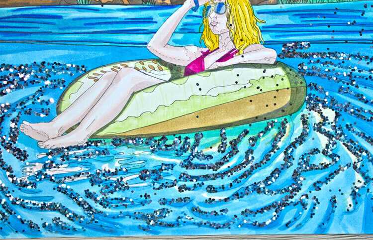 Auch die Kombination Marker – Fineliner war bei mir wieder sehr beliebt, ebenso das für mich typisch gewordene Motiv der Meerjungfrau.
