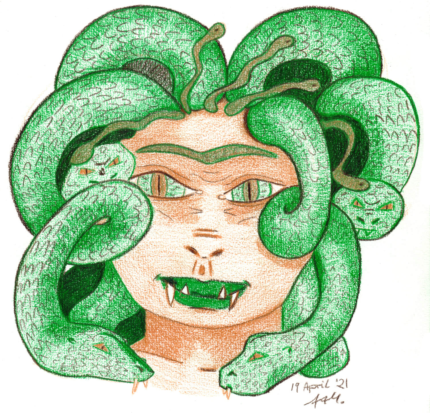Man kann wunderbar erkennen, dass ich früher primär mit Kugelschreiber verschiedener Farben und rein aus dem Kopf gezeichnet habe. Wiederkehrende Motive bzw. Motivthemen sind dabei Meerjungfrauen, Ägypten, Frauen (Portraits), verschiedene Tiere und mythologische Figuren verschiedener Art.