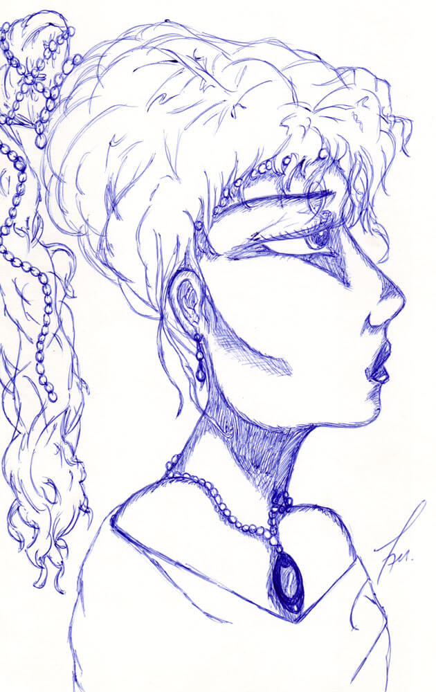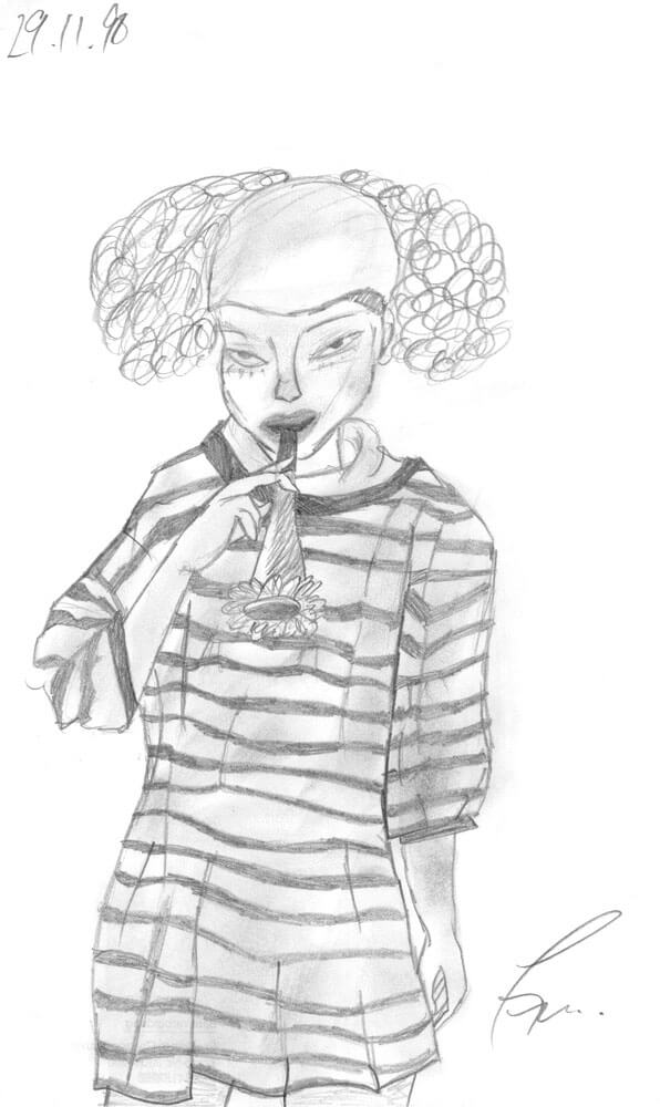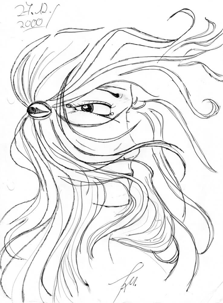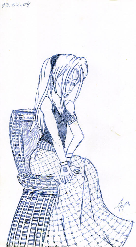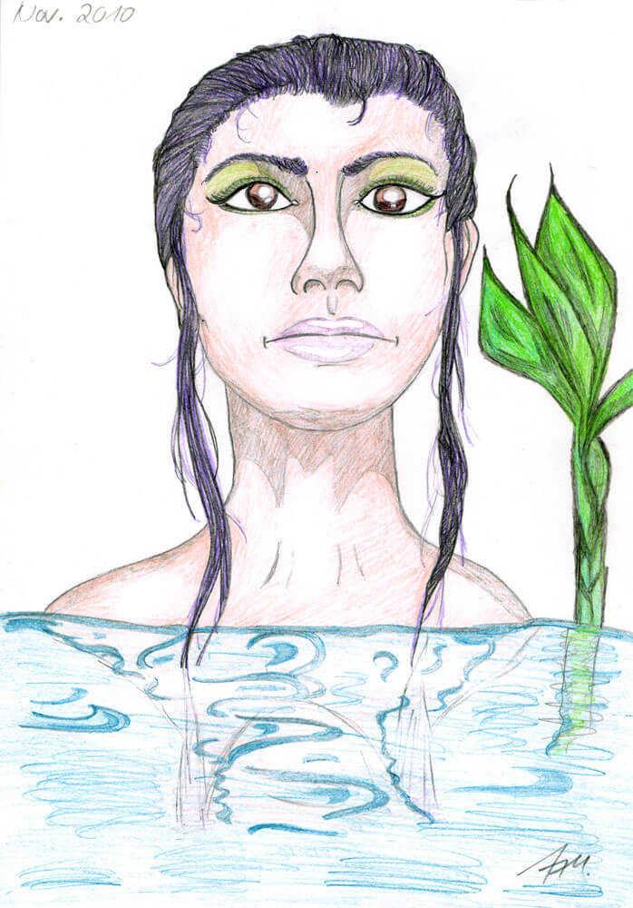 Bleistift und Kugelschreiber waren meine prägenden Zeichenmaterialien in den 1990er Jahren. Motive wie Meerjungfrauen, einige Porträts, ganz viel Ägypten und Schulprojekte kamen damals aufs Papier.