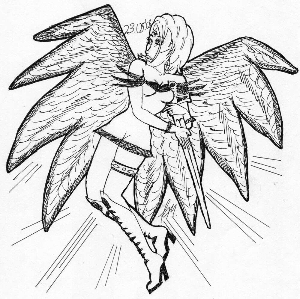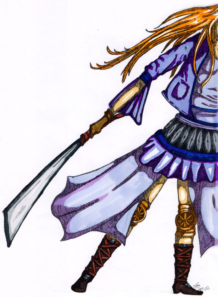 Neue Materialien kamen hinzu: Fineliner und später Alkoholmarker und noch ein wenig später sogar das passende Papier dazu. Meine Motivwahl ist zudem um einige mythologische Themen sowie Kriegerinnen angewachsen.