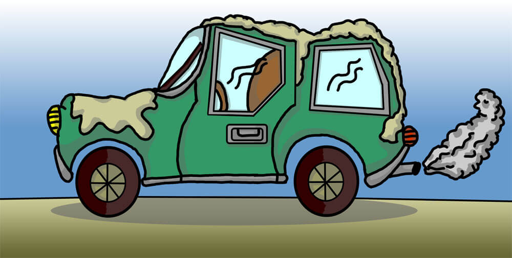 Das Bild „Matschkarre“ welches ebenfalls am Computer mittels Grafiktablett entstanden ist, ist sozusagen ein Insiderwitz und der Name, den meine damaligen Kolleginnen meinem damaligen Auto verpasst haben. Der Name geht zurück auf den sehr schneereichen Winter, in dem mein Golf 2 an der Straße stand und von einem vorbeifahrendem LKW über und über mit Schneematsch bedeckt wurde. 😉