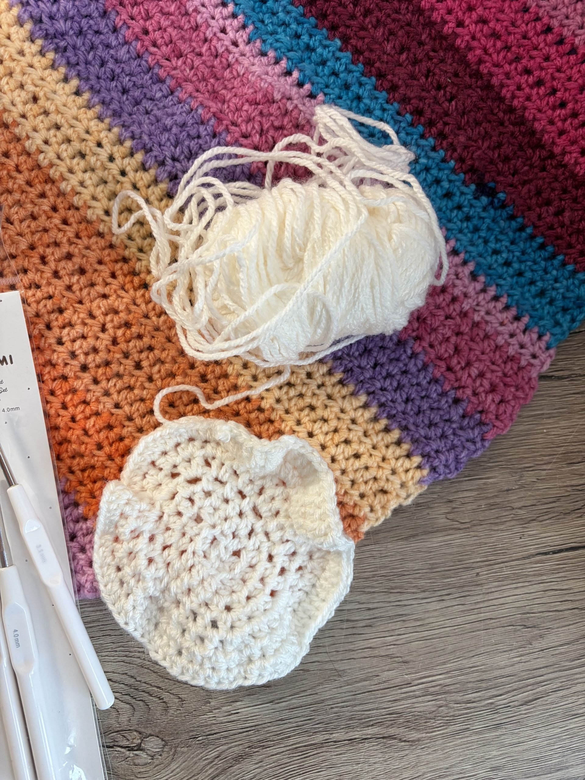 Zudem macht es Spaß, ohne Zwang einfach ein bisschen auszuprobieren. Wie erwähnt, die verschiedenen Maschenarten zu kombinieren, aber auch zu sehen, was die unterschiedlich großen Häkelnadeln so bewirken. Dass es da so eine große Auswahl und viele Varianten gibt, habe ich erst beim Stöbern im Geschäft (online wie offline) gemerkt.