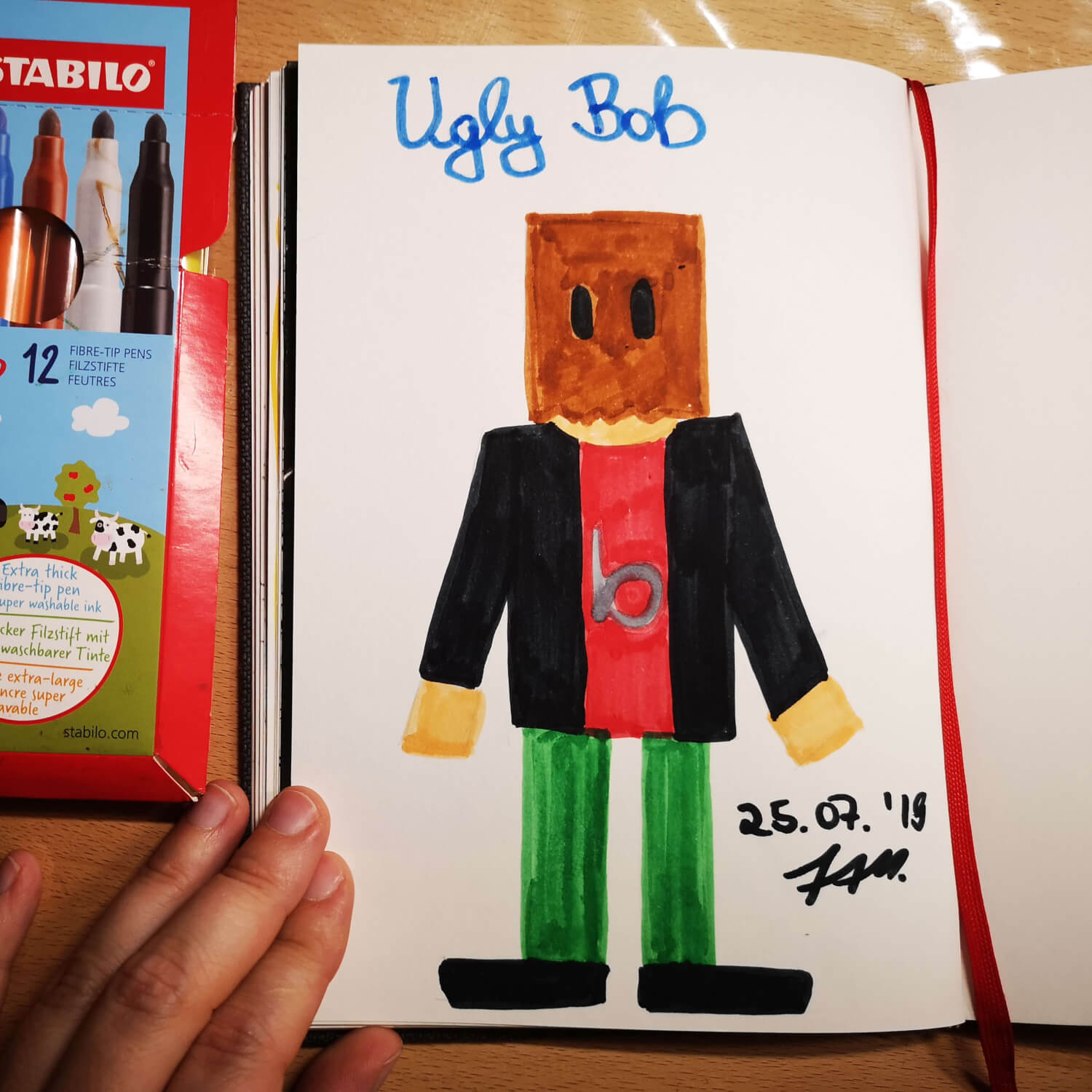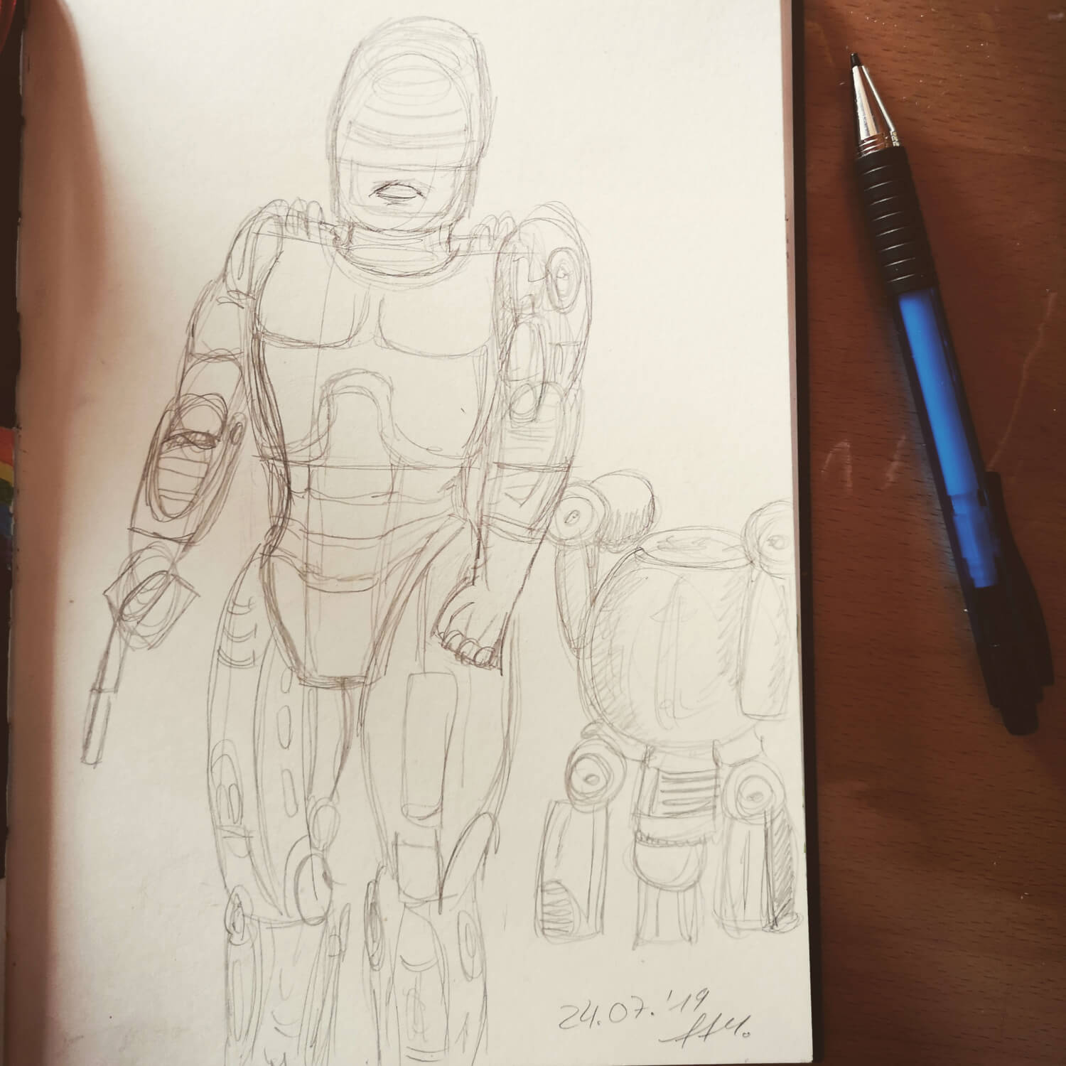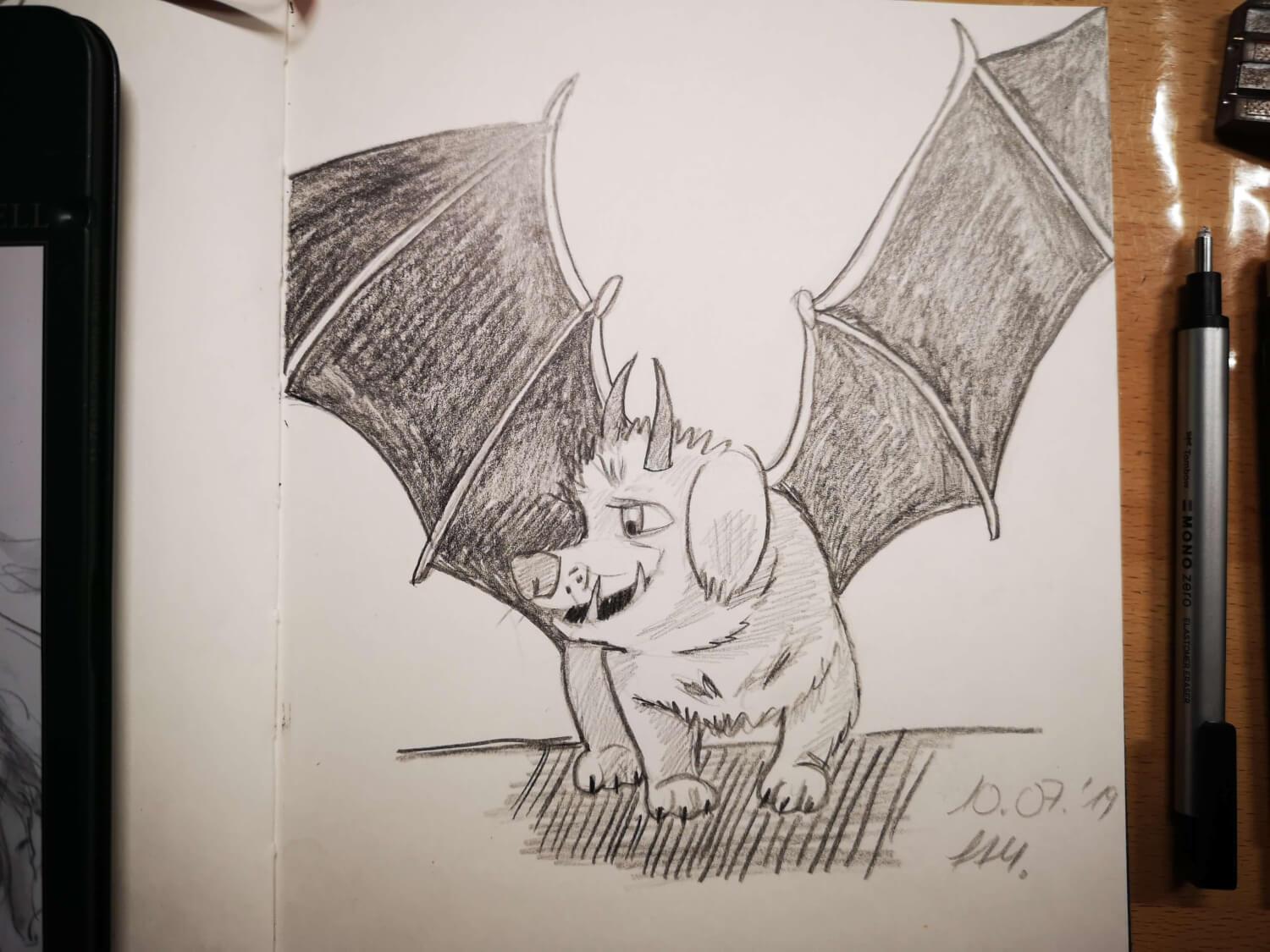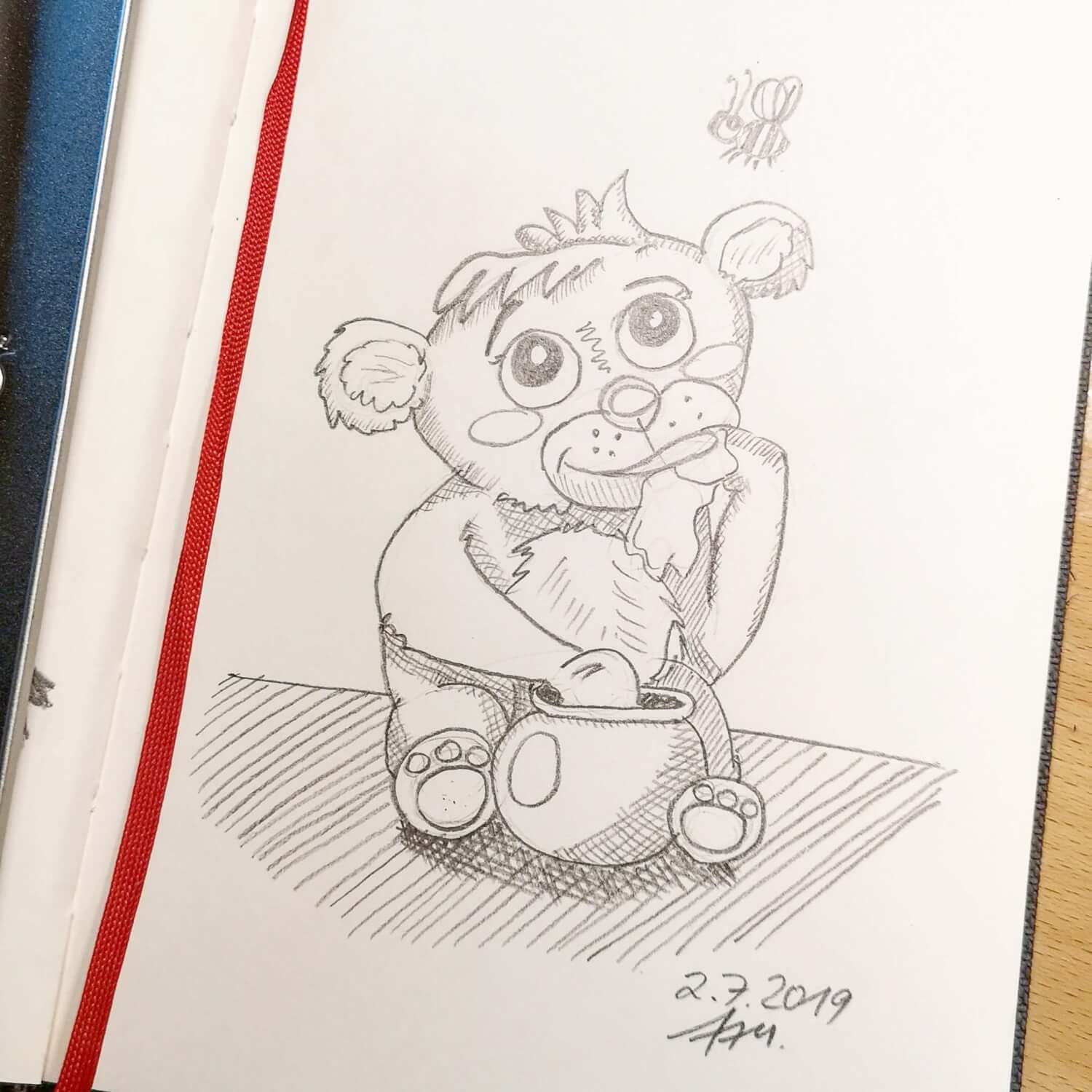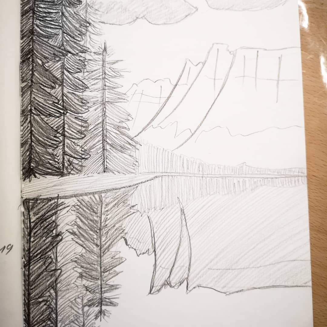 Einige wenige Zeichnungen gab es schon vorher in dem Skizzenbuch und es ist bislang immer noch erst halb voll. Aber ich bleibe am Ball – dies soll das erste Skizzenbuch werden, welches ich komplett voll gezeichnet habe!