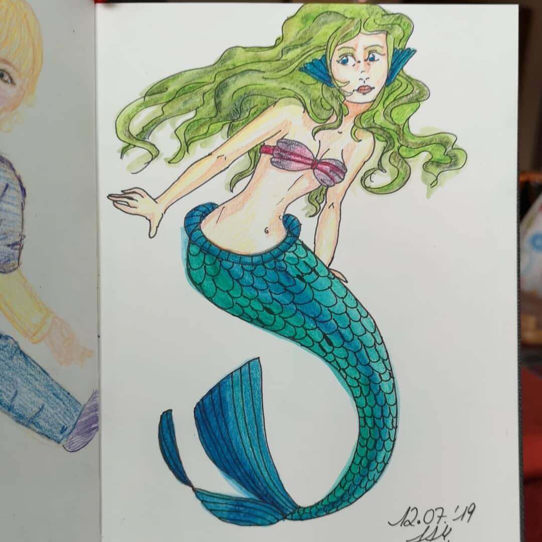 Heimspiel! Also durfte ich wieder eine Meerjungfrau zeichnen. Mein Posting. - Tag 13 – Götter