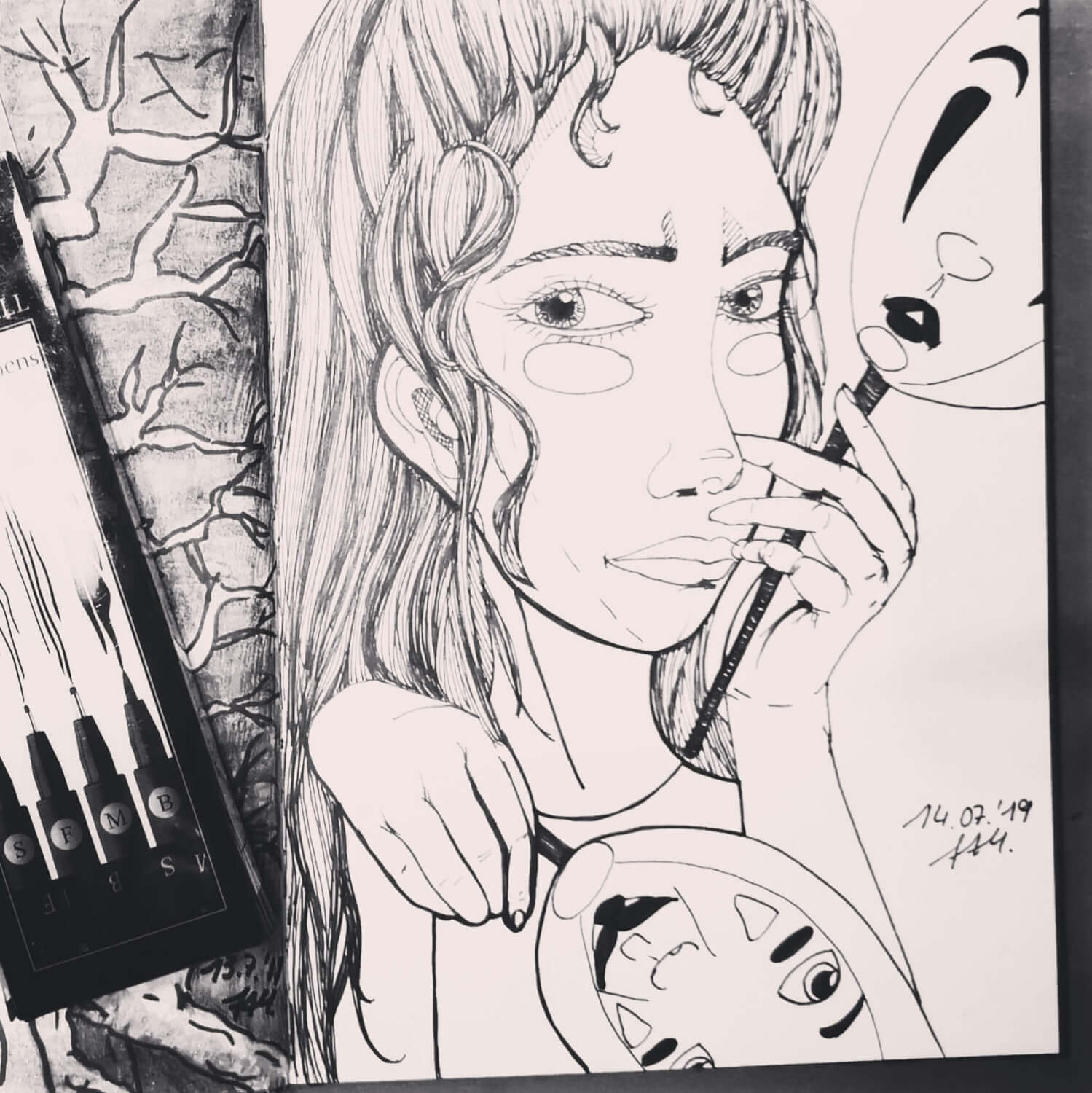 In Folge dessen habe ich sehr viel mit den DERWENT Inktense gearbeitet, sehr viel vom Fineliner Gebrauch gemacht und auch mal die Faber-Castell Albrecht Dürer Aquarellmarker* neuerlich ausprobiert. Aber auch die MOLOTOW Aqua Pump Softliner kamen zum Einsatz.