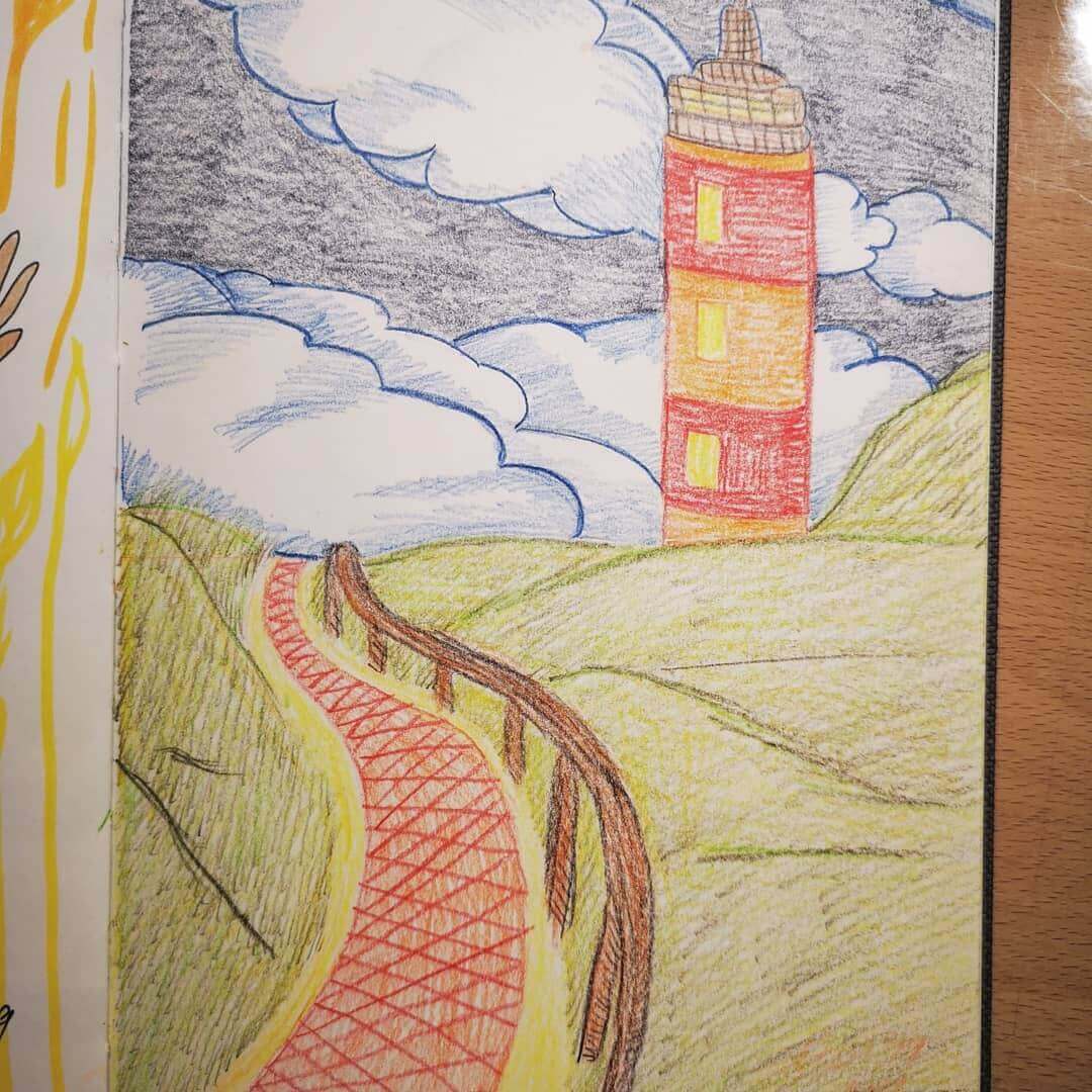 Eine Landschaft hatte ich eigentlich schon gezeichnet – also nicht schon wieder Kanada. Diesmal wurde es ein Leuchtturm an der Küste. Mein Posting. - Tag 18 – Graffiti