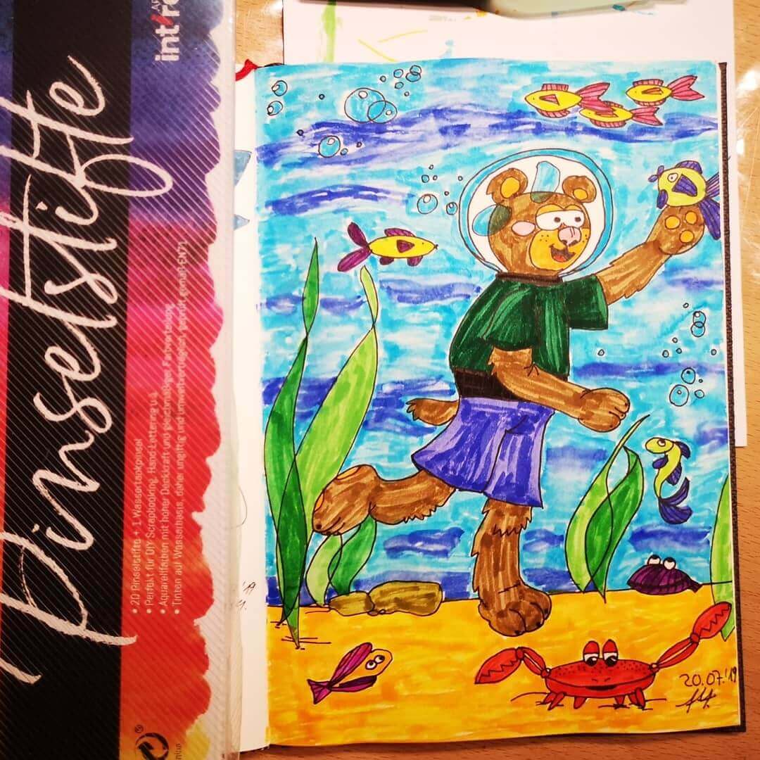 Eines meiner typischen Comicbärchen im Tauchanzug geht in Tuchfühlung mit den Meeresbewohnern. Mein Posting.