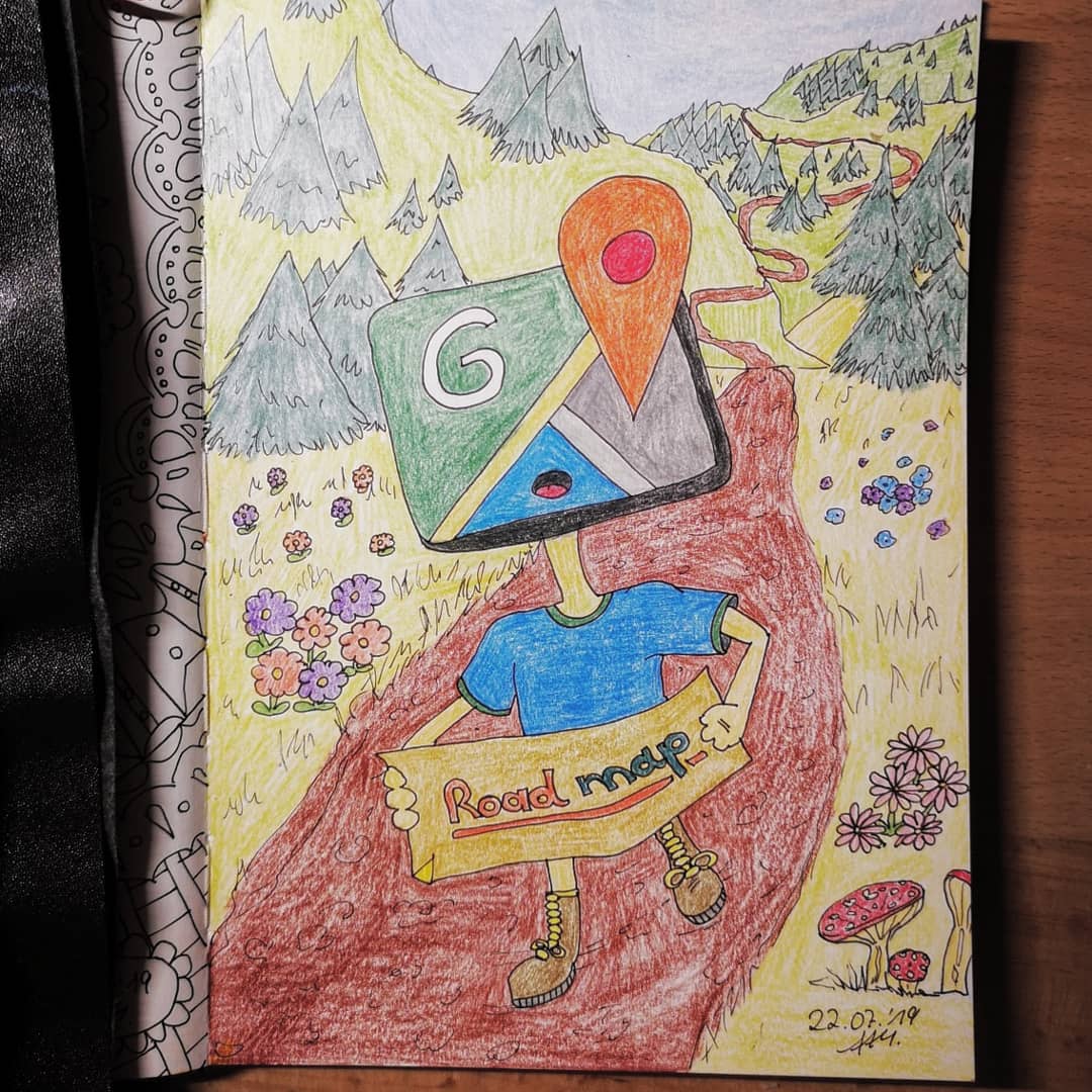 Dass Viele Instagram nehmen würden, war abzusehen. Ich habe mich für Google Maps entschieden und mir den Gag erlaubt es auf Wanderschaft zu schicken mit oldscool Landkarte in der Hand. Mein Posting. - Tag 23 – Knalliges Musikcover