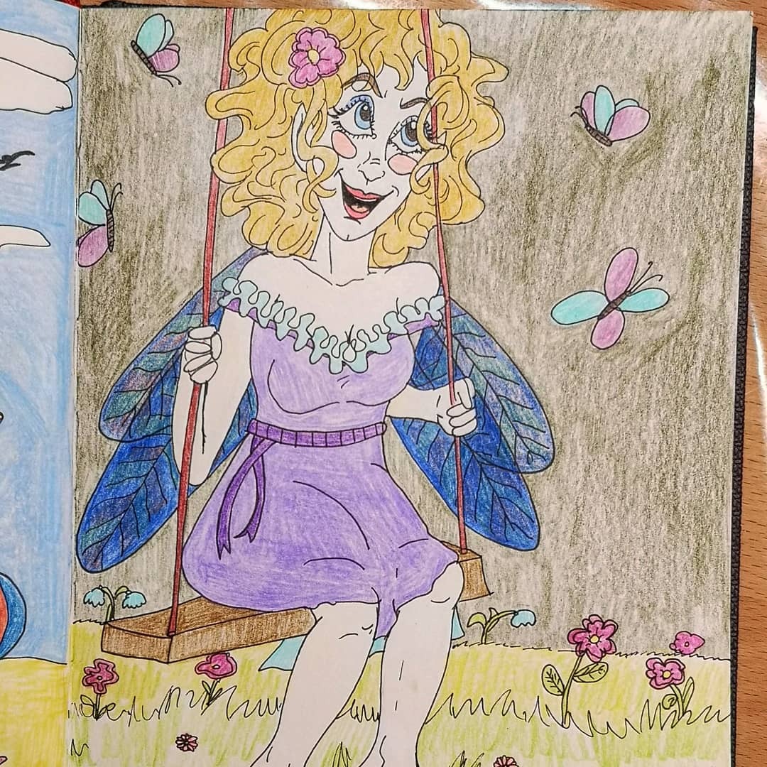 Ich wollte keine dritte Meerjungfrau malen, daher ist es diesmal eine Blumenfee geworden, die schaukelt. Mein Posting. - Tag 29 – Zeichne ein Outfit