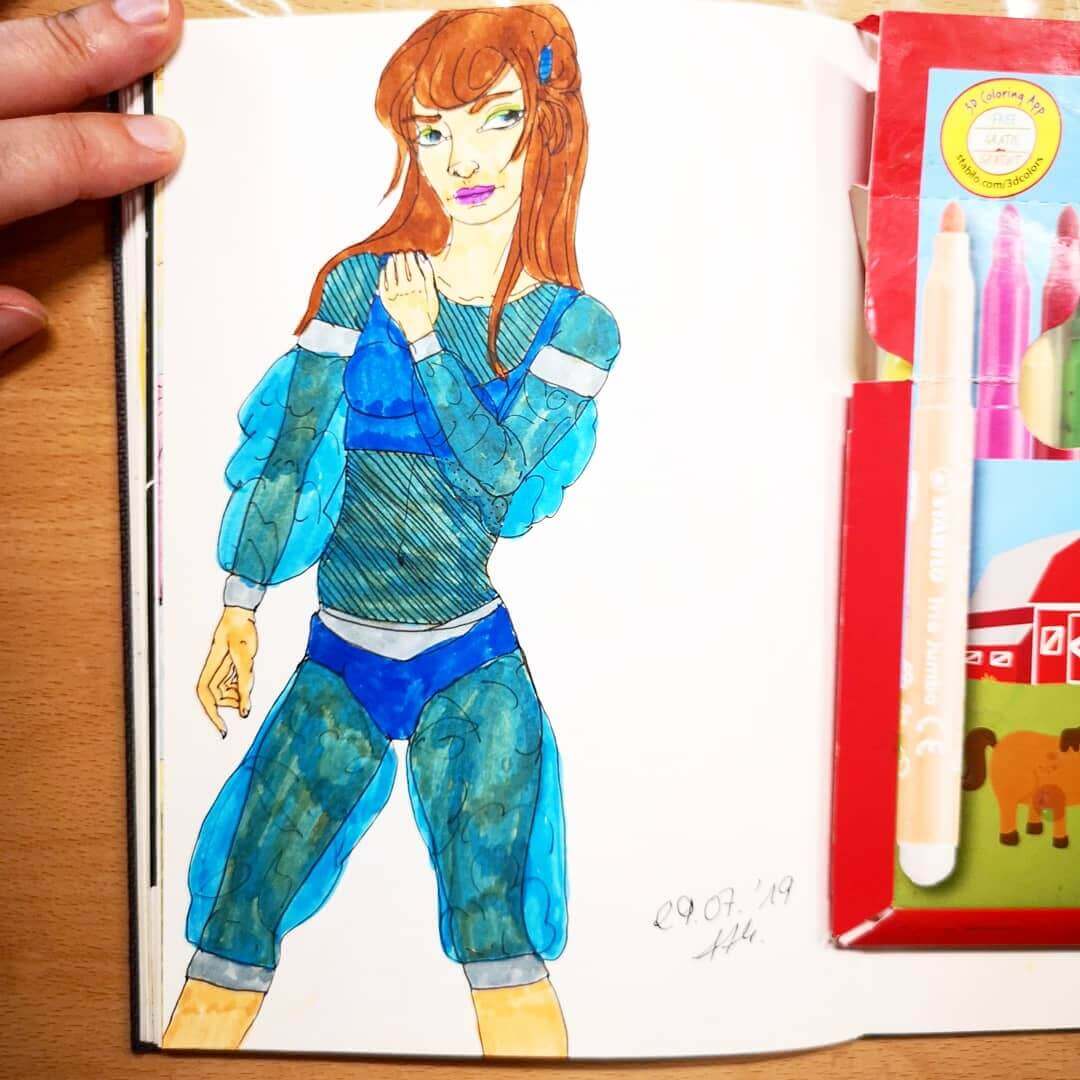Sowas habe ich früher viel gezeichnet. Diesmal habe ich mir für die Pose eine Fotovorlage gesucht. Bei der Kolorierung ist mir leider die Puste ausgegangen (von der Motivation her). Mein Posting. - Tag 30 – Zeichne dein zweites Ich