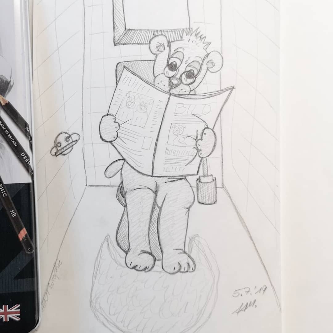 Was könnte alltäglicher sein als der Gang zur Toilette? Das Ganze dann dargestellt mit Comicbärchen. Mein Posting. - Tag 6 – Lieblingscharakter in deinem Stil