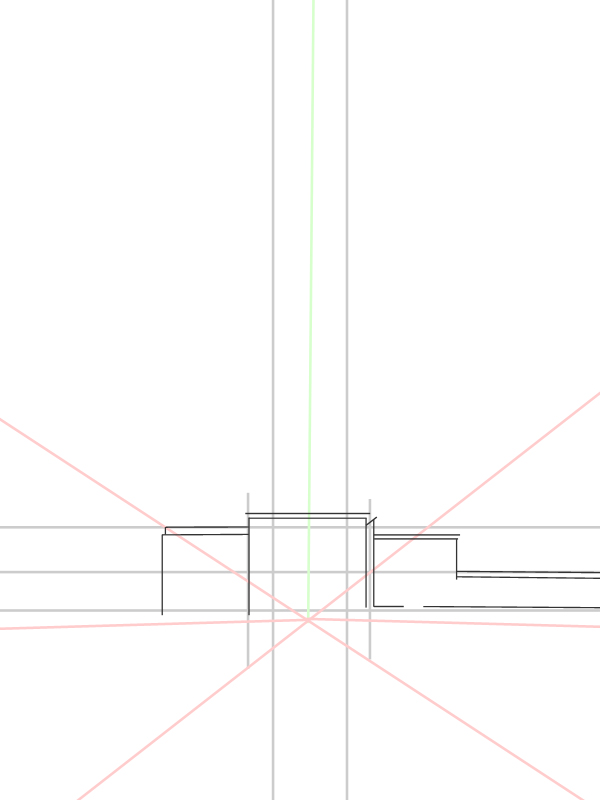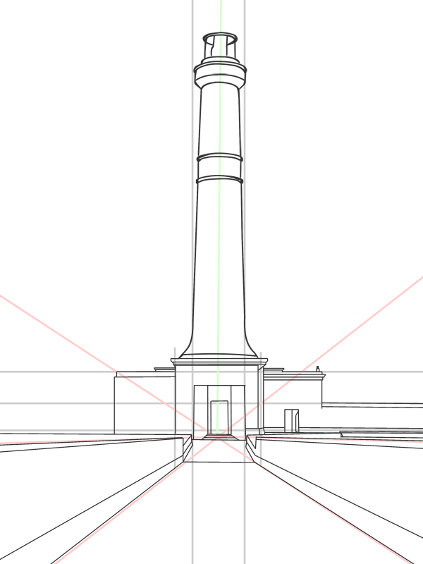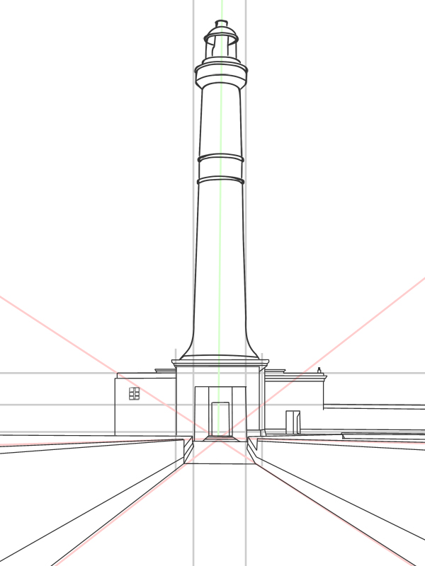 Im nächsten Schritt habe ich anhand der Hilfslinien den Leuchtturm skizziert.