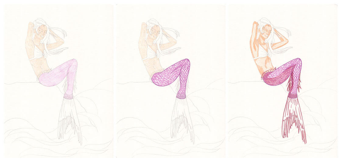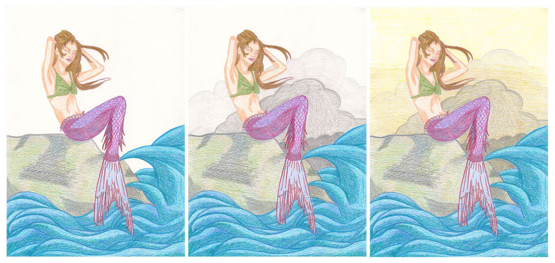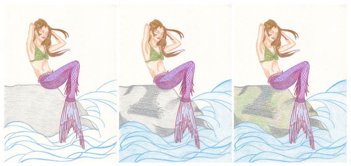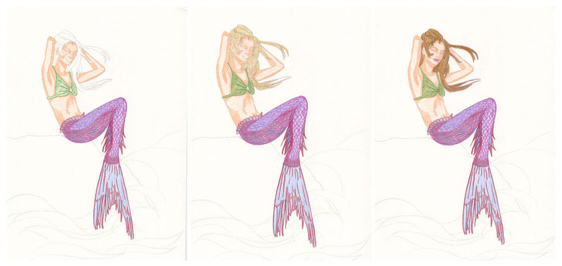 Meerjungfrau mit Aquarellbuntstift kolorieren 4
